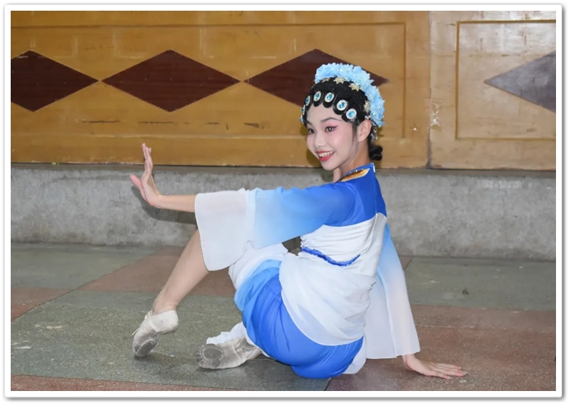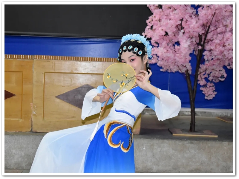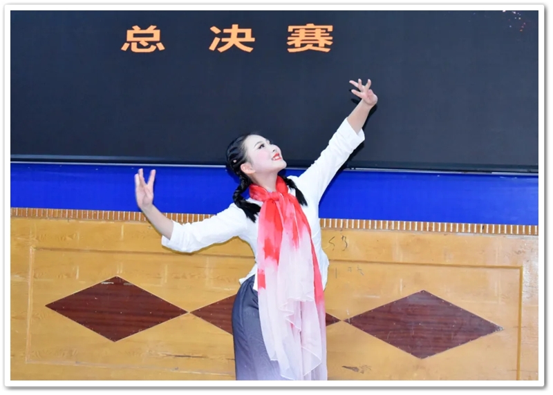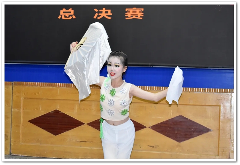 三号选手来自准高一年级373班肖子璇同学,作品《飞鸟髻》,肖子璇同学手持扇子与丝巾帕,随着茉莉花这首耳熟能详的曲目,再配合上胶州秧歌的民族性,将整支舞蹈表现的活灵活现。