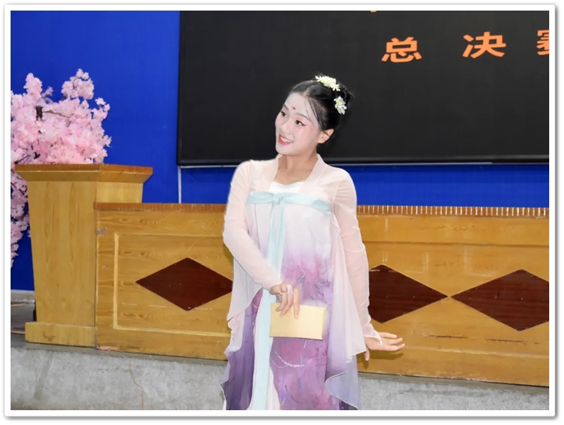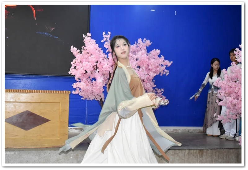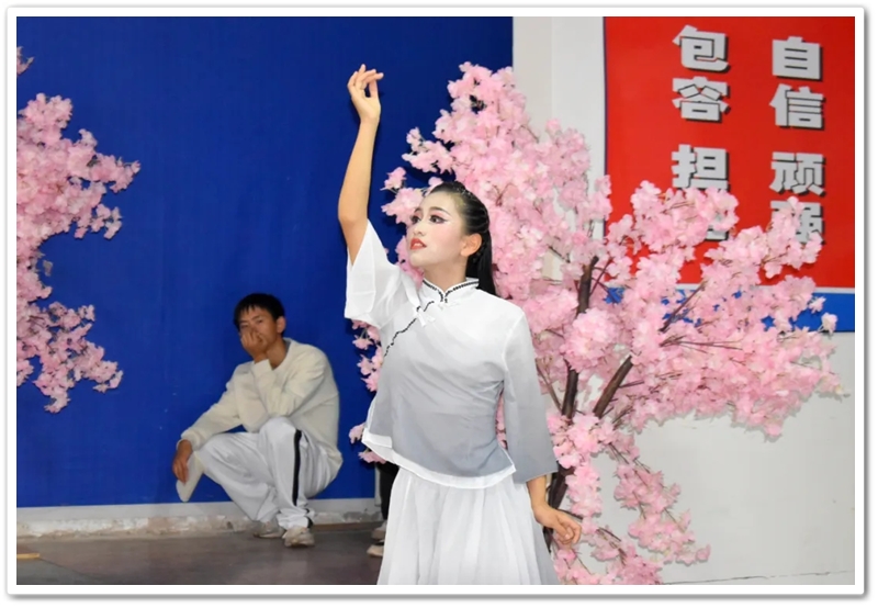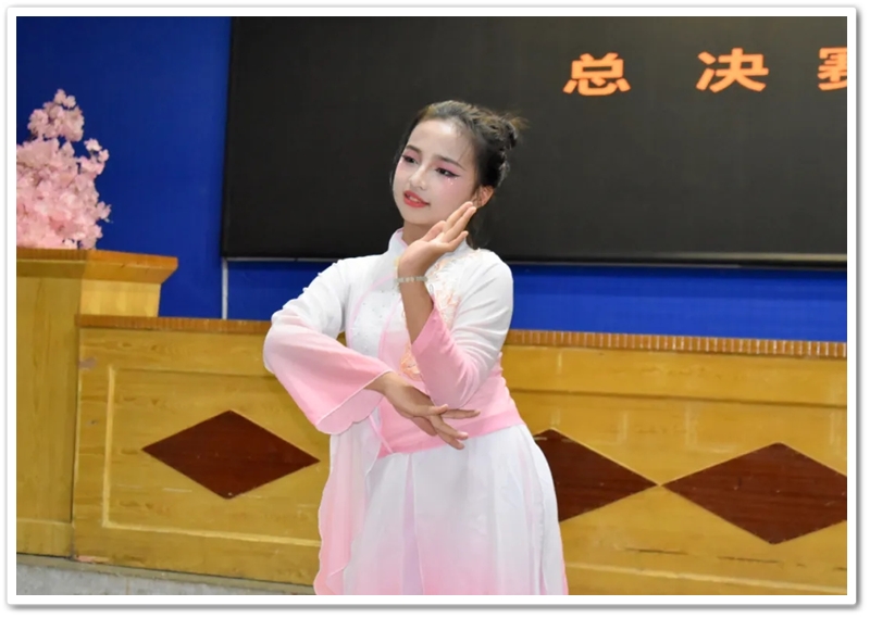九号选手来自高二年级320班刘一莹同学,作品《寒依疏影》,这是一支以梅花为主题的舞蹈作品,通过少女与梅枝的融合,展现了梅花从独自凌寒绽放到春回大地默默隐退的历程。这支舞蹈不仅在视觉上给人以美的享受,更在精神层面上传递了深刻的寓意和情感。刘同学通过流畅的动作,优美的舞姿,很好的表达了本支舞蹈。