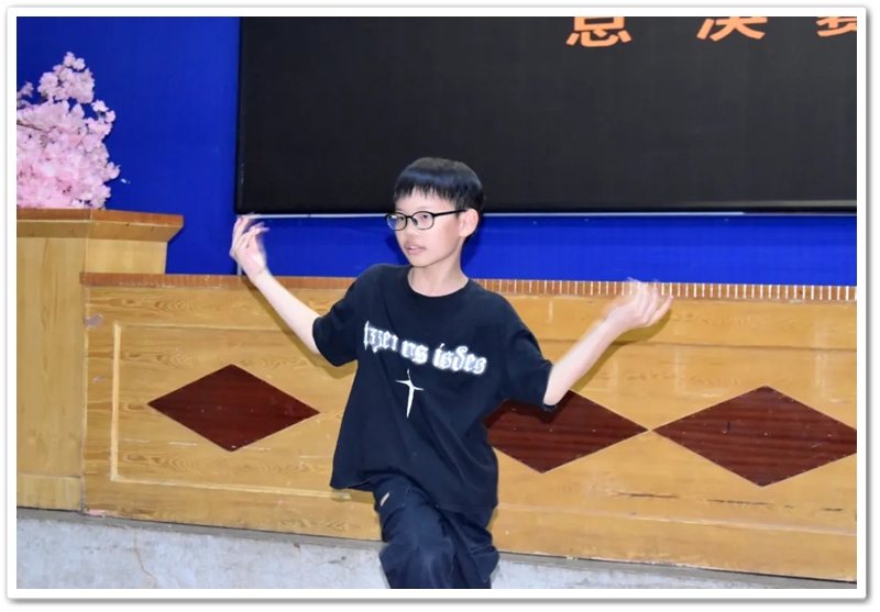 四号选手来自高一年级354班谢鑫萍同学,作品《来日方长》,坐在凳子上,好似的追忆,好似在思考,正如曲子里的歌词:有些东西你要是不提,我不去回忆。一个人演绎出两个人的矛盾角色,循序渐进的推进到后面的部分里,一步一步。