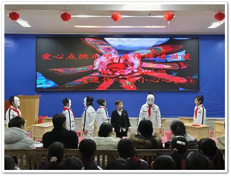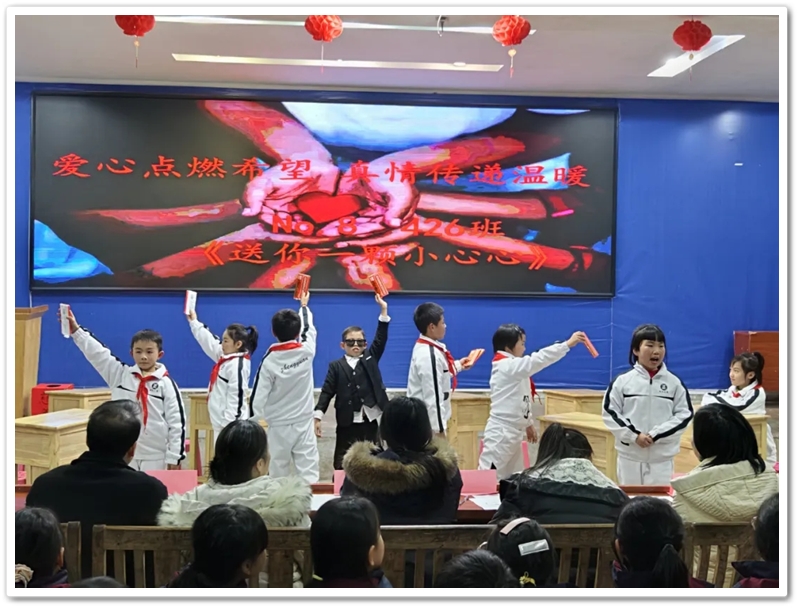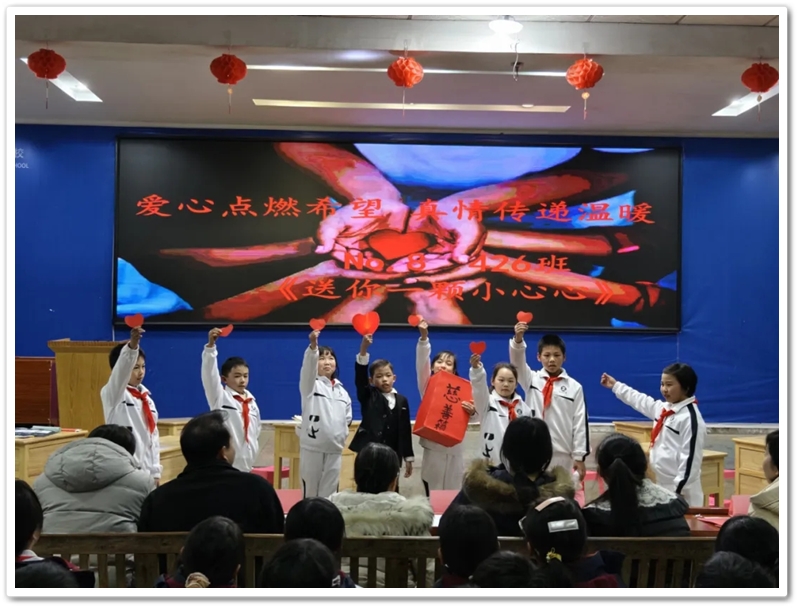 同学们,你们心中都有一颗充满爱的小心心。瞧,426班同学带着纯真与善良,在《送你一颗小心心》中,让我们记住了“用真心换真情”,记住了“调皮的果果”“憨憨的大壮”“有正义感的丹丹”“会思考的芒果”……他们在表达,他们在演绎,他们用自己的表演告诉每个观众:校园里的样子,孩子的心理世界,他们对待“金钱”“友谊”“爱”的认知和态度……