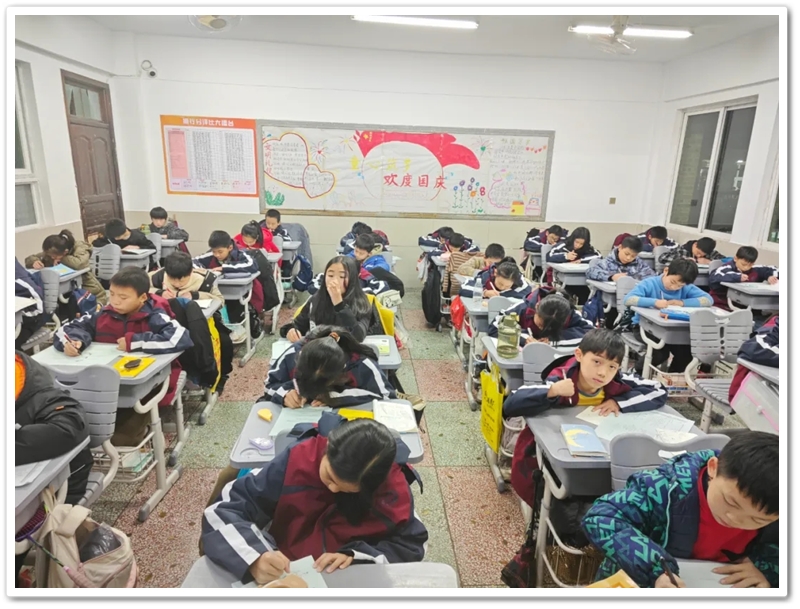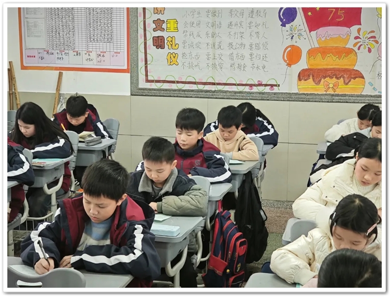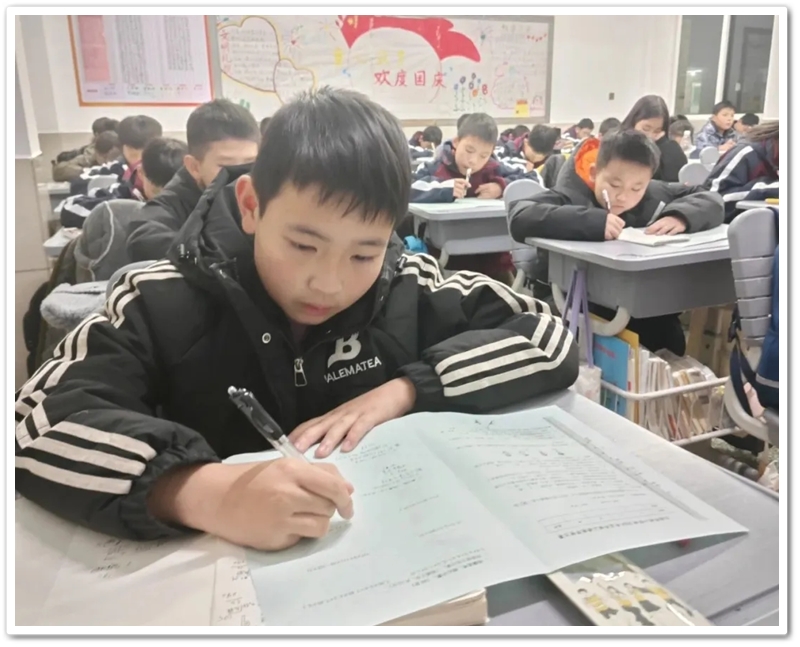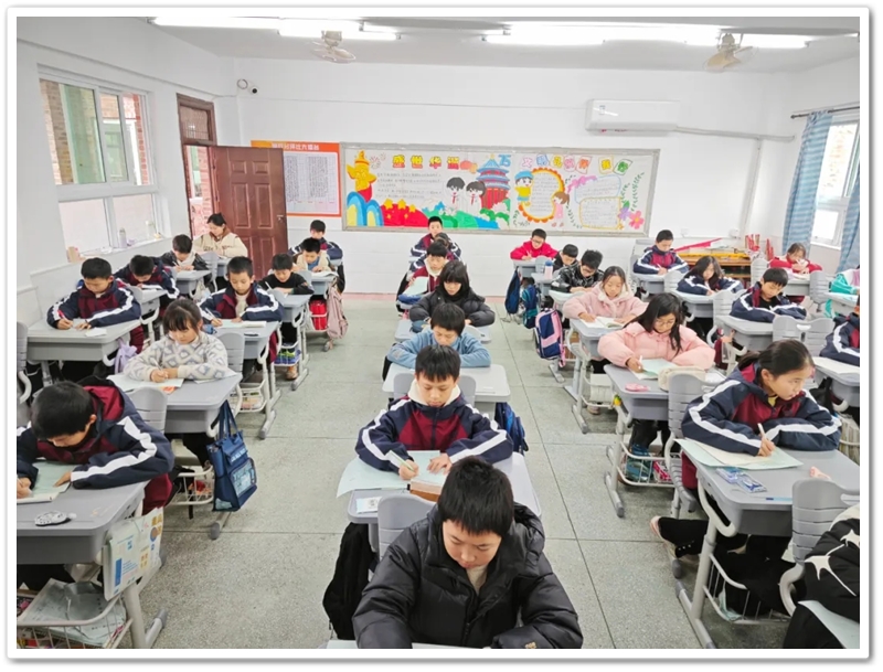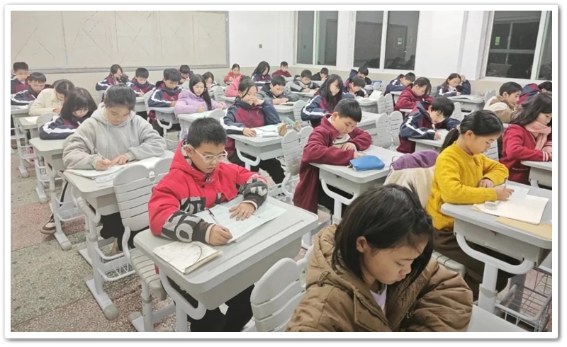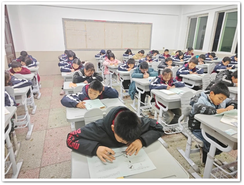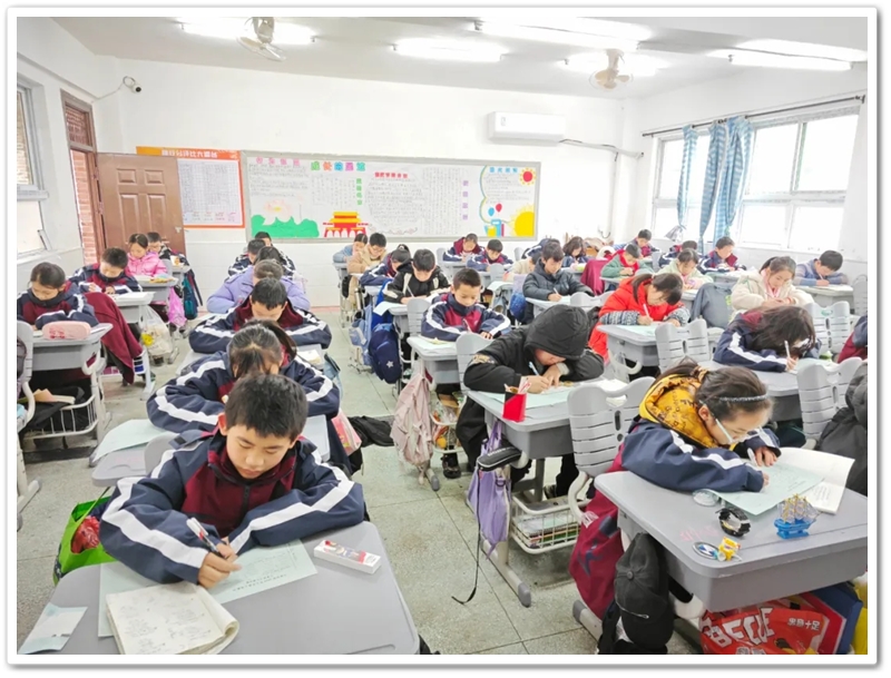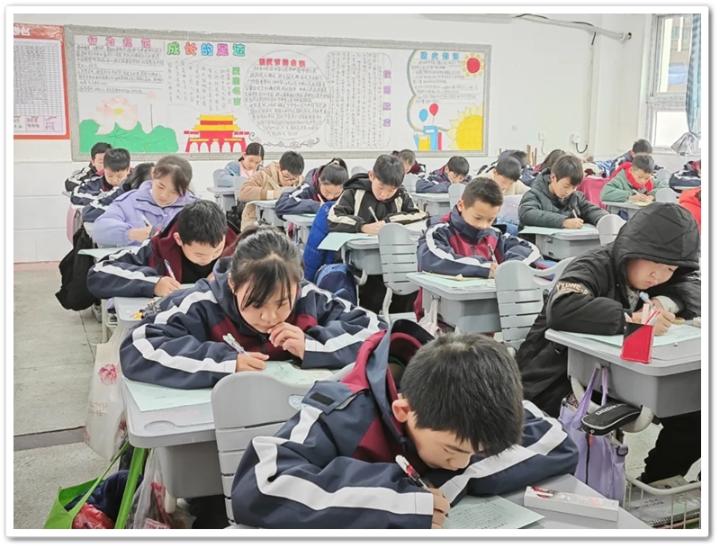 12月26日下午第七节课,速算比赛率先登场,那场面犹如没有硝烟的战场。随着一声清脆的哨响,同学们迅速进入状态,目光紧紧锁定试卷上的一道道题目,手中的笔似离弦之箭,在纸上“刷刷”作响。每一个数字的书写,每一次运算的完成,都展现出他们平日里刻苦练习的扎实功底。有的同学眉头微皱,却丝毫不影响手下的速度,大脑飞速运转,心算、笔算齐上阵;有的同学则神情自若,仿佛那些复杂的算式在他们眼中不过是小菜一碟,一气呵成地写下答案。整个赛场只回荡着笔尖与纸张亲密接触的声音,那是数学奏响的激昂旋律,每一个音符都跳动着同学们对胜利的渴望。