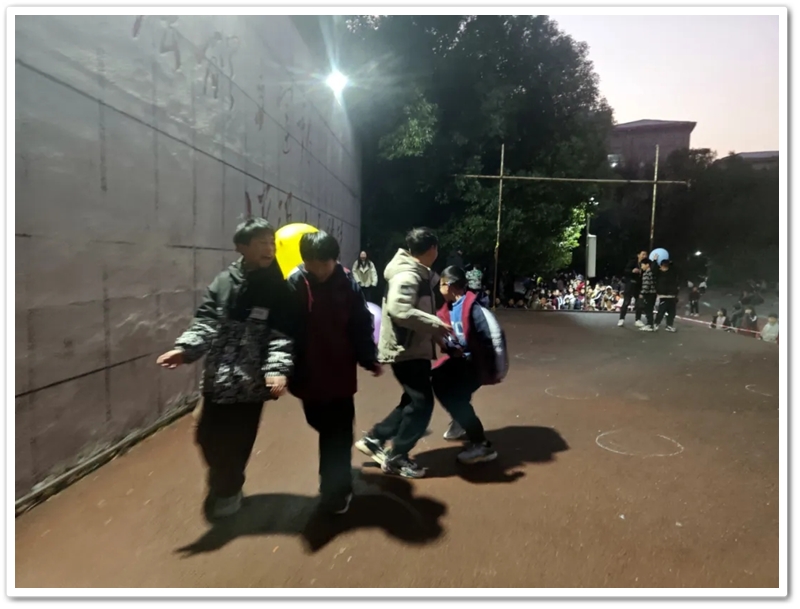 何笃员和肖文敏两位老师身手敏捷,左躲右闪,灵活地避开别人的“攻击”,同时找准时机去踩对方的气球;欧艳兰和邓晶老师老师则像大力士,勇往直前,直接向目标冲过去,那气势仿佛要把所有气球都踩爆。周子娟与贺娇老师就像两个步伐轻盈的舞者,时而腾跃,时而横闪,甚是灵活。老师们的表情也十分有趣,有的紧张得皱着眉头,有的开心得哈哈大笑,还有的为了保护自己的气球,做出各种夸张的动作,引得台下的同学们笑得眼泪都快出来了。