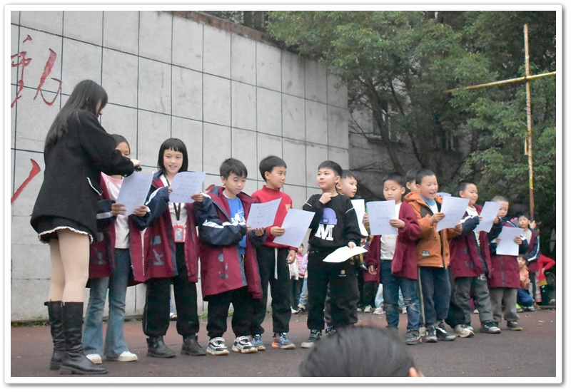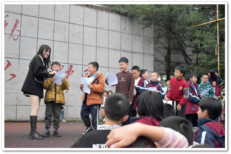 “轻轻敲醒沉睡的心灵,慢慢张开你的眼睛,看看忙碌的世界,是否依然孤独的转个不停。春风不解风情,吹动少年的心……”伴随着《明天会更好》的音乐,本次活动的序幕在孩子们欢快的手势舞与主持人谢老师的报幕中拉开了。