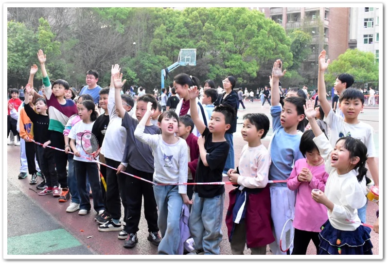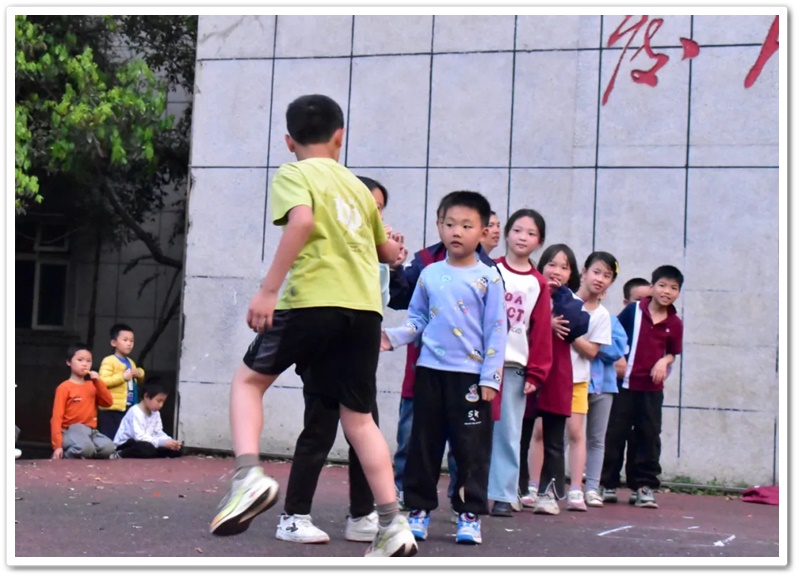 最后一个游戏是《魔力转圈圈》,游戏分三个小组,每组10人,由第一个同学手托纸张,转一圈,传递给第二位同学,依次传递……游戏中孩子们各展所能,尽情展现自己的努力与热情。
