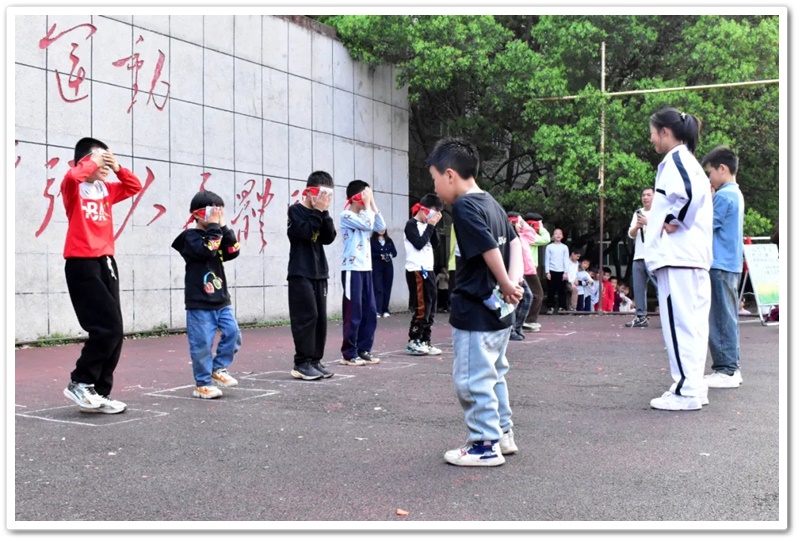 紧接着,精彩游戏活动轮番上演。第一个游戏是《蒙眼60秒踏步挑战》,游戏规则:参加活动的小朋友,在蒙眼的情形下,随着音乐原地踏步,时间为60秒,若时间结束时,还在圈内,则获胜。游戏看似简单,挑战成功的孩子却不多,大家在动感音乐的感染下,或转圈,或往前,逗得台下的小观众的哈哈大笑。