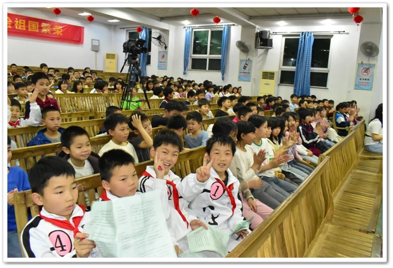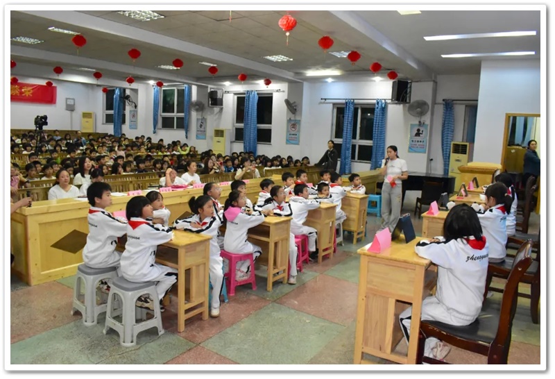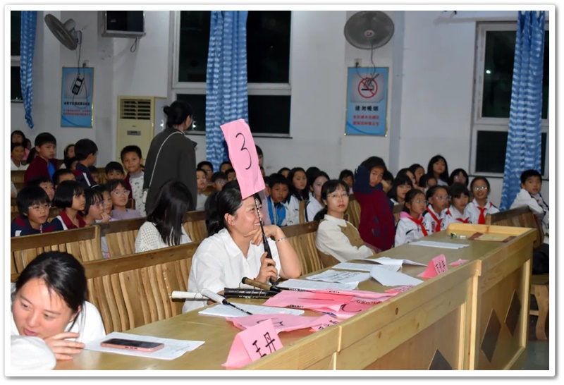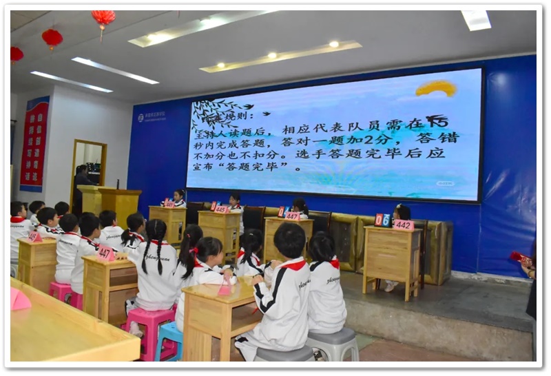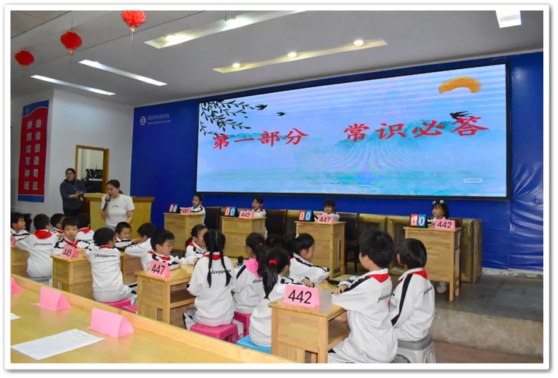 当比赛进入中场休憩,主持人李老师轻启诗笺,引领全场学生共诵白居易的《忆江南》。稚嫩的童声如清泉般流淌,这场集体吟诵,带着诗词的种子,已悄然在孩子们的心田种下一片江南。