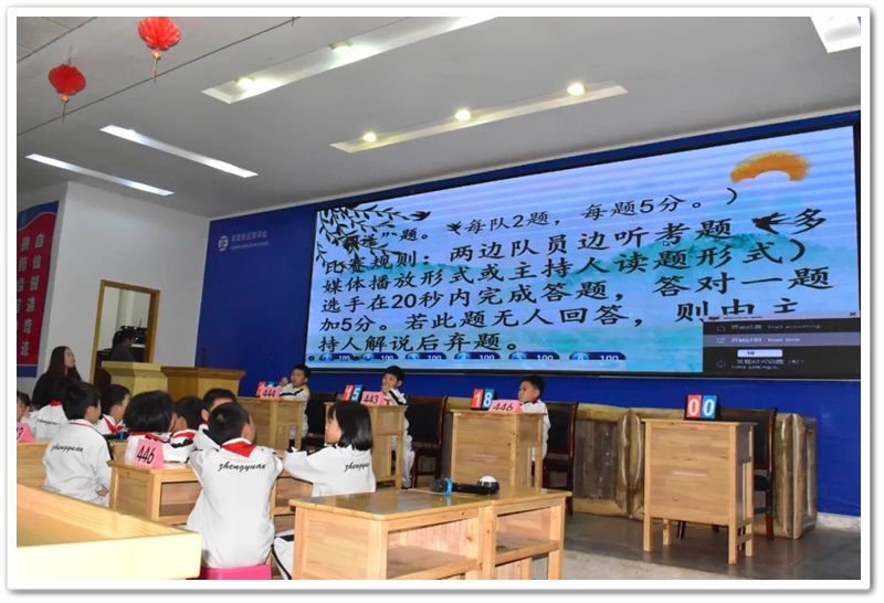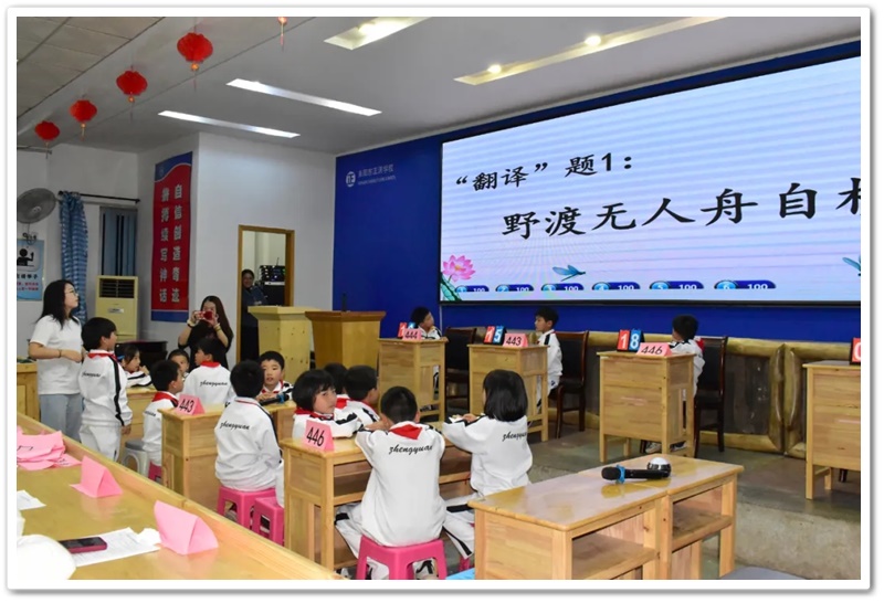 随着主持人林影老师的一句"草长莺飞二月天,拂堤杨柳醉春烟"的诗句暖场,这场融合必答题、对对碰、猜猜猜与翻译题的诗意闯关正式拉开帷幕。