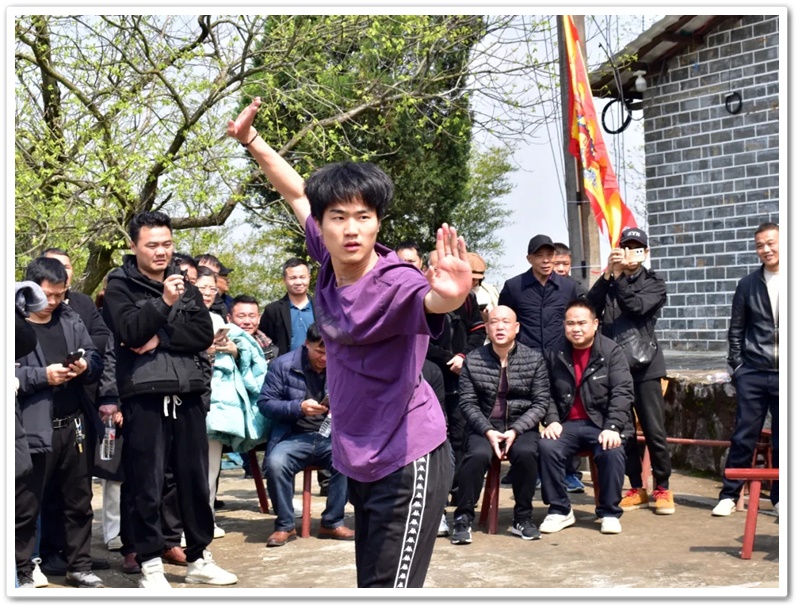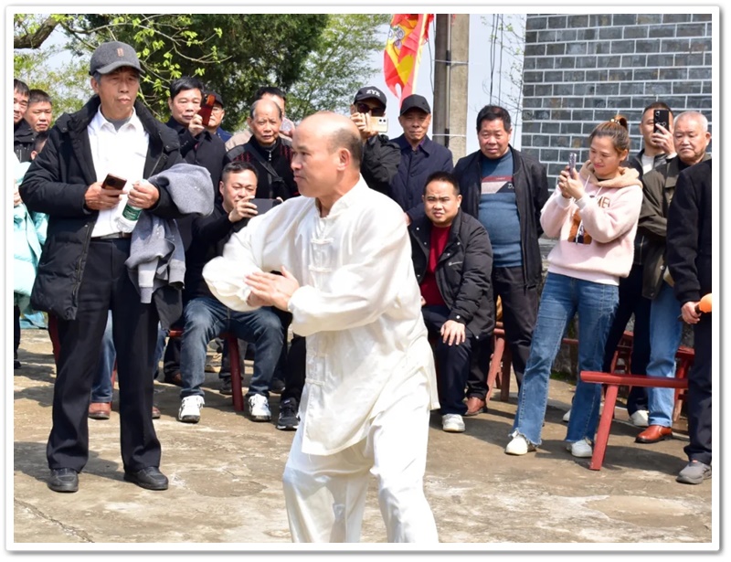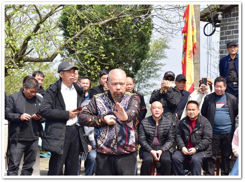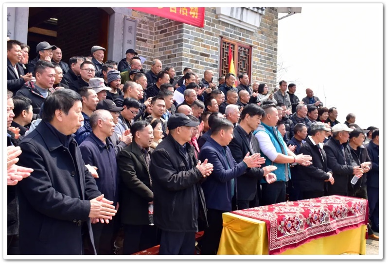 公祭仪式前,耒阳市罗含武术馆馆长罗锡平携学员献演“罗家拳”,刚柔并济的招式尽显传统武术精髓,赢得全场喝彩。衡南罗平等宗亲即兴登台,以拳会友,将现场气氛推向高潮。随后,庄严肃穆的公祭仪式正式拉开帷幕。全体人员肃立向罗含公行三叩首礼,以表敬仰。