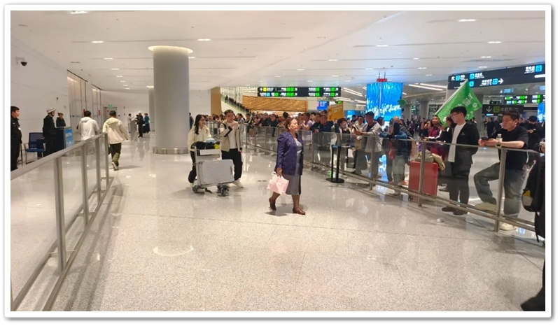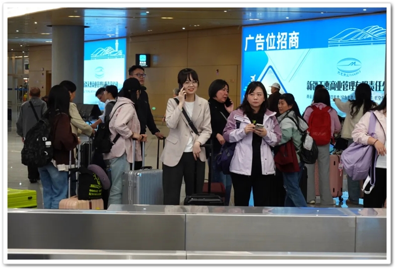 罗校长他们在博物馆徜徉,在国际大巴扎逛摊位之时,第三批队伍已从长沙登机,第四批队伍正准备集结登车赶往黄花机场,第二批队伍也与新疆导游安排的接机大巴在机场门口胜利会师。