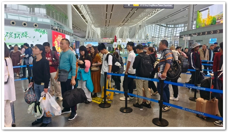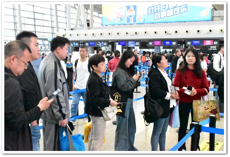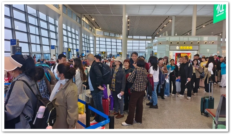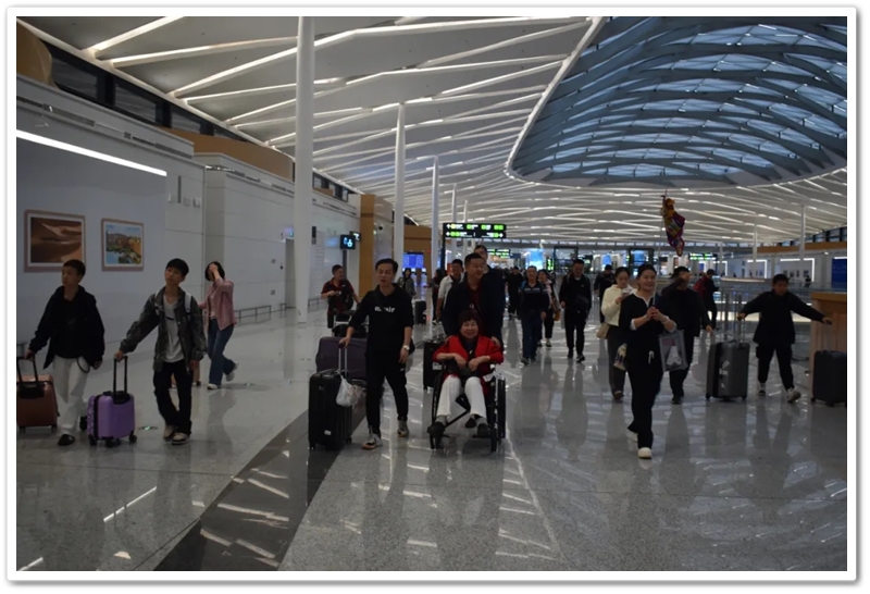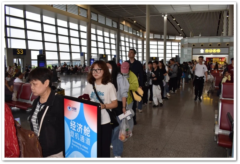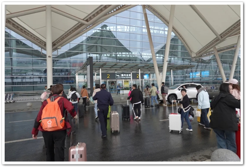 第二批次出发的教师们更为幸运。上午九点上大巴,中午时分昭山服务区吃过随车携带的正源盒饭,下午一点多就抵达了长沙黄花机场。在机场里,领取登机牌、托运行李箱、安检候机,一切有条不紊。