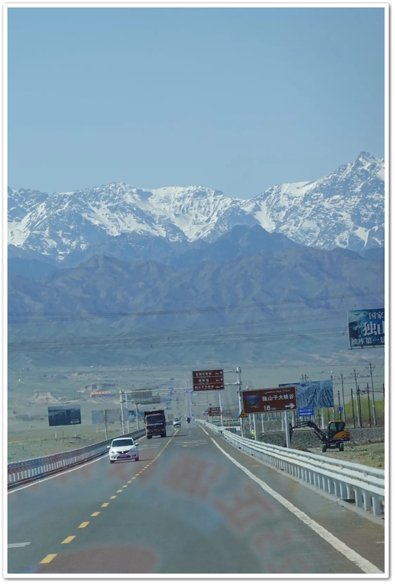 不过,“最美的风景在路上”这句话,用在新疆,实在是再合适不过。一路上,天山山脉绵延不绝,车窗外掠过雪山、戈壁、草场、麦田、棉田,景致变幻无穷,倒也不觉得车程漫长。