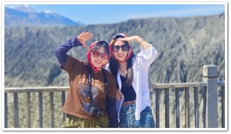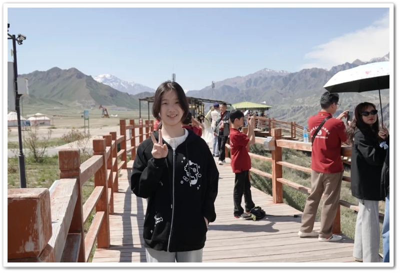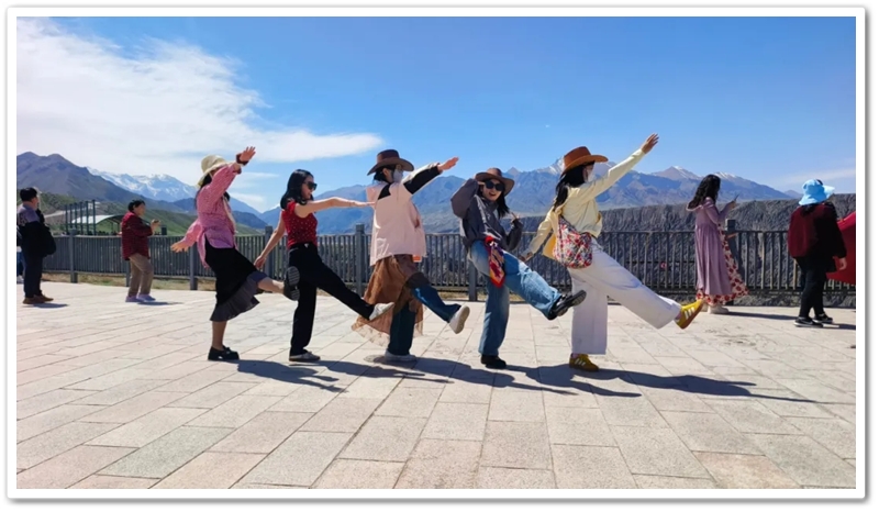 导游是在新疆建设兵团长大的,对沿途的风物与人文风情熟稔于心。她一路娓娓而谈,讲起林则徐和左宗棠在新疆的行踪与渊源,聊起儿时捡棉花挣零花钱的趣事,绘声绘色。兴致来了,她还哼起当地的童谣,老师们也跟着应和,车厢里歌声、欢笑声此起彼伏。想象中会是漫长枯燥的四五个小时车程,也变得轻松愉快起来。