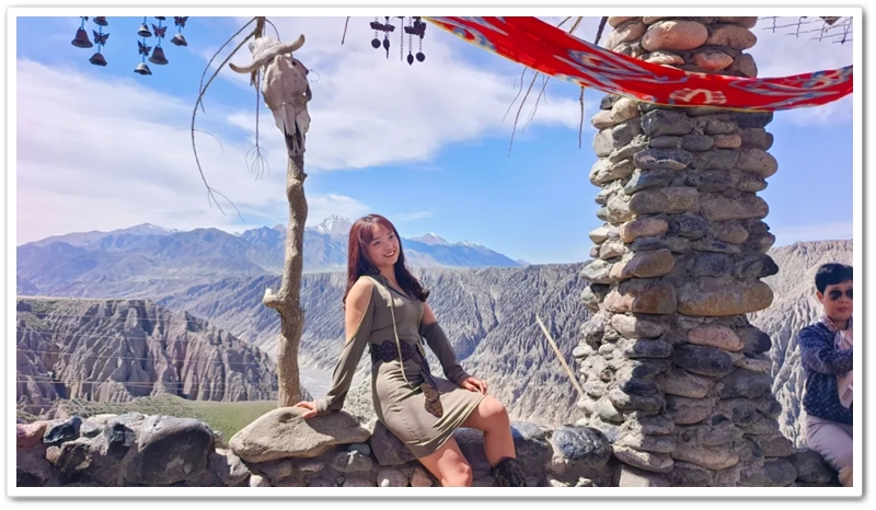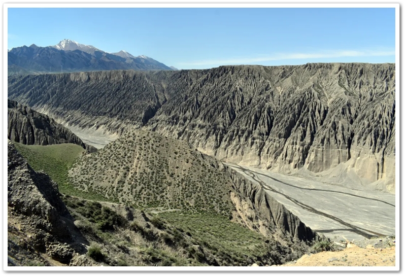 吃过当地特色的牛肉丸子汤和牛肉饼,再驱车二十分钟,终于到了心心念念的独山子大峡谷。远远望去,那峡谷像是大地被撕开的一道口子,沟壑纵横,气势恢宏。崖壁上密布的流水切沟如刀削斧劈般险峻,在阳光映射下色彩斑斓交织成画。极目远眺,雪山在云雾中若隐若现,与峡谷相映成趣。这奇特的地貌,像是大自然用鬼斧神工精心雕琢而成,让人不禁感叹造物主的神奇。