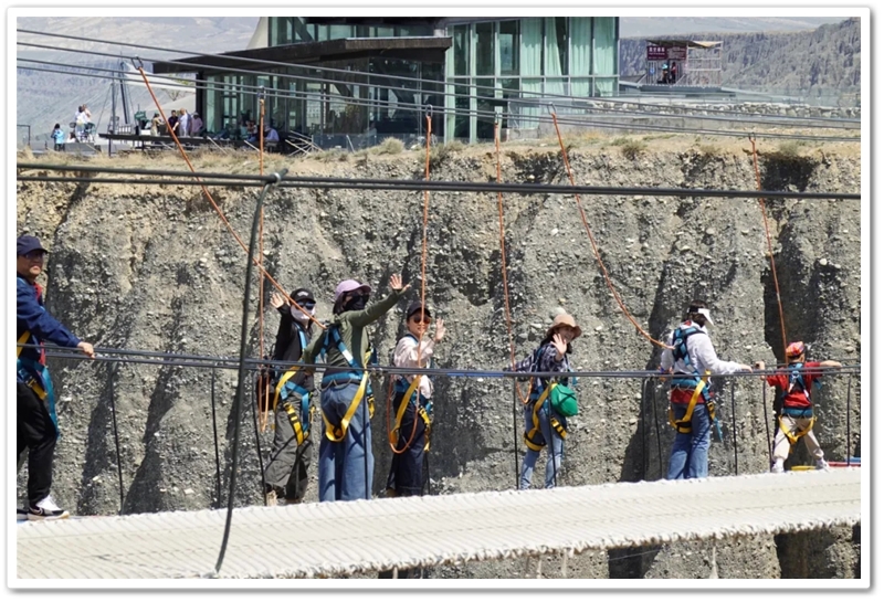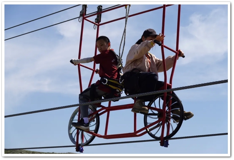 女老师们戴着丝巾,凹出造型,花枝招展着在峡谷边的风铃、石柱旁拍照打卡,轻盈的身影与壮丽的峡谷景色相映成画;男老师们戴着小方帽,在各个惊险刺激的游乐项目中挑战自我,欢声笑语在峡谷上空反复回荡。尽情游玩两个多小时,集合呼声响起时,却仍觉意犹未尽。