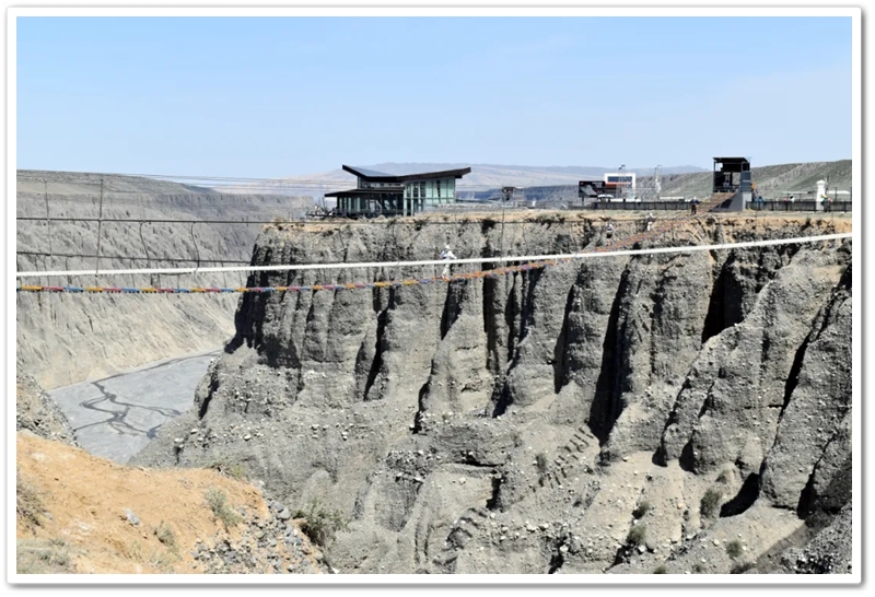 峡谷之上,独库玻璃桥晶莹剔透,走在上面,脚下是百米深的峡谷,犹如漫步云端。峡谷溜索从崖壁上飞速滑过,风声在耳边呼啸,刺激非凡。还有那步步惊心的索桥,脚踏板之间留有间隙,每走一步都让人提心吊胆,却又忍不住挑战自我;悬崖秋千更是惊险,从高处荡出的瞬间,仿佛整个人都要飞进峡谷之中。地轨滑车下山沿着轨道风驰电掣,返程贴着陡坡吭哧吭哧扶摇直上,亦是饶有趣味。