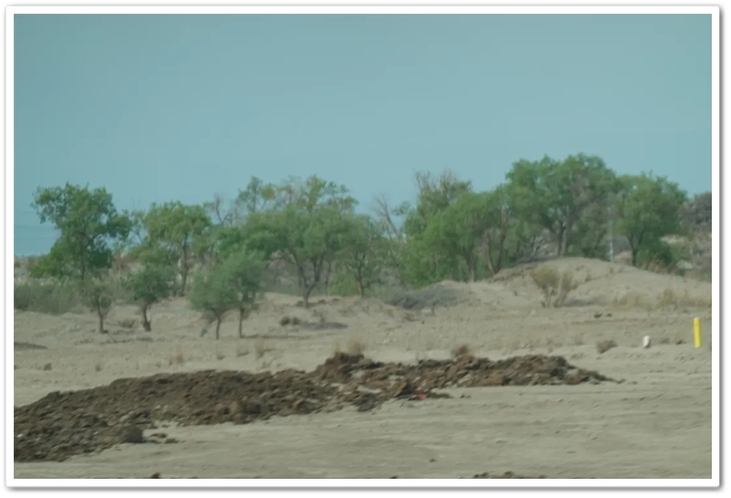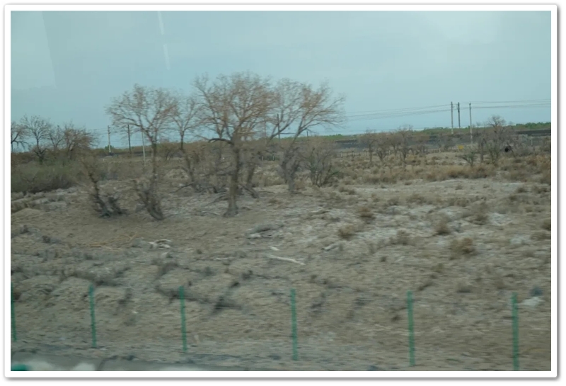 途中,风景不断变换,从草场、戈壁,到盐碱地,再到梭梭草、胡杨林,最后是郁郁葱葱的榆树林。“国境合作区”的字样渐渐映入眼帘,不知不觉已到下午七点。