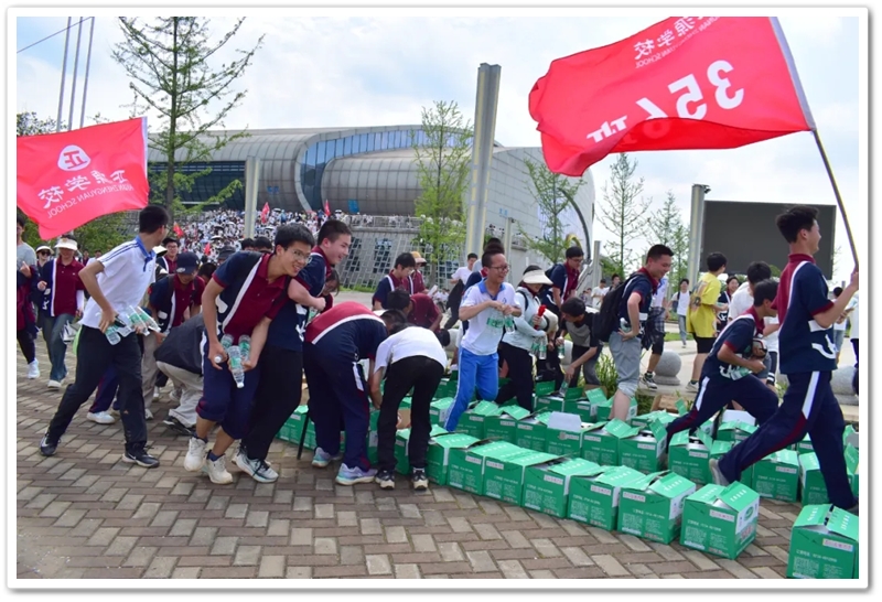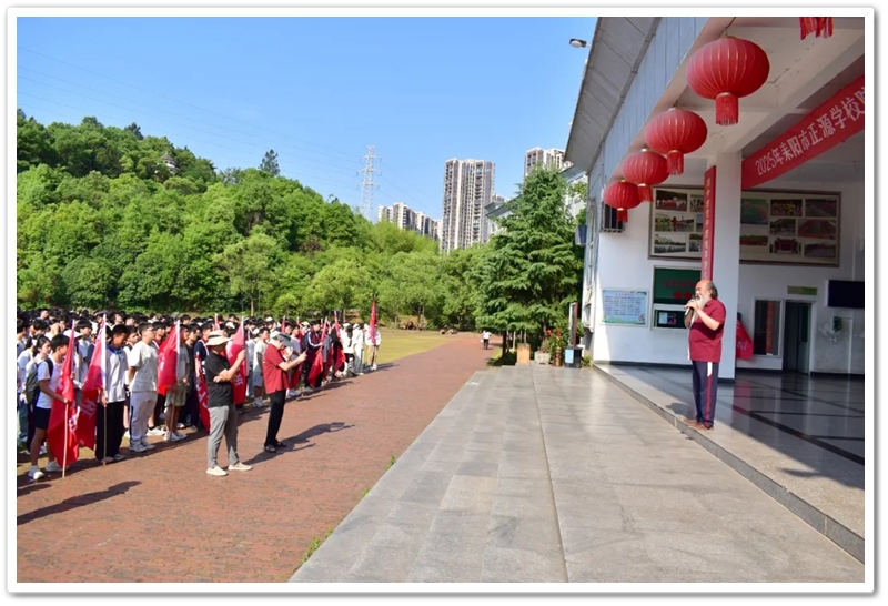 五月,灿烂的晨光照拂万物,如少年的眼眸般清澈明亮,温润的和风举托红旗,如赤子之心般热烈滚烫。5月14日上午7:45,教学楼前广场上已涌动起一片热烈的海洋。正源学校初三年级1300余名师生整装待发,每个人的脸上都跃动着紧张又期待的光芒。