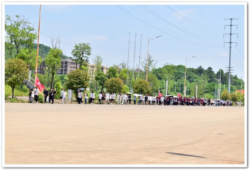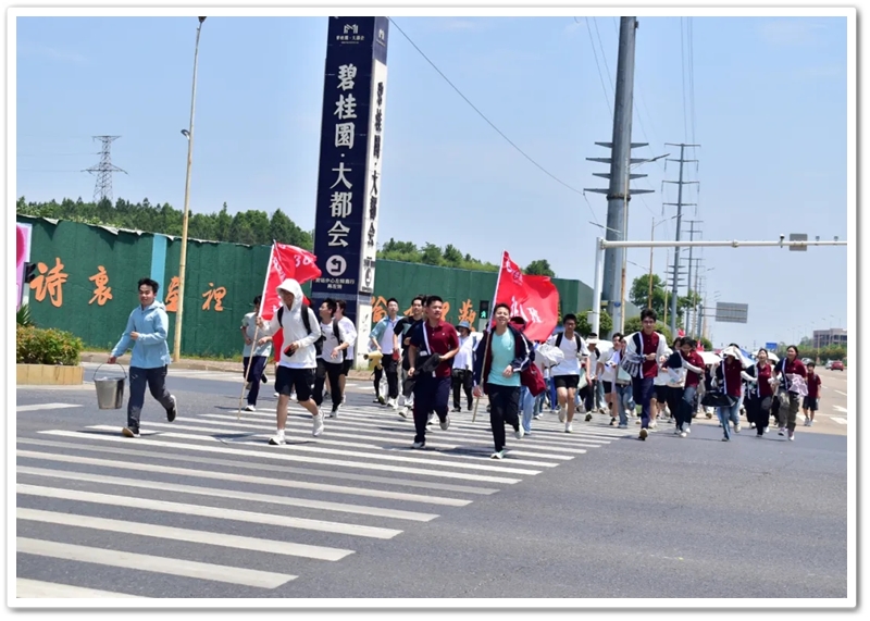 上午8:20,随着总指挥的哨声划破晴空,罗校长在最前方举旗带队,年级领导指挥方阵,各位班主任紧随队伍,22个班级高举旗帜,斗志昂扬,如蜿蜒的长龙依次出发。穿过南大门时,队伍右转踏上新城一路,107国道上的车流仿佛被这群少年的朝气感染。青春的人流穿过热闹的街道,路口有交警们为同学们保驾护航,老师们为同学们打气加油,罗校长在途中带领同学们高喊班级口号,鼓舞士气,少年们意气风发,气势如虹。