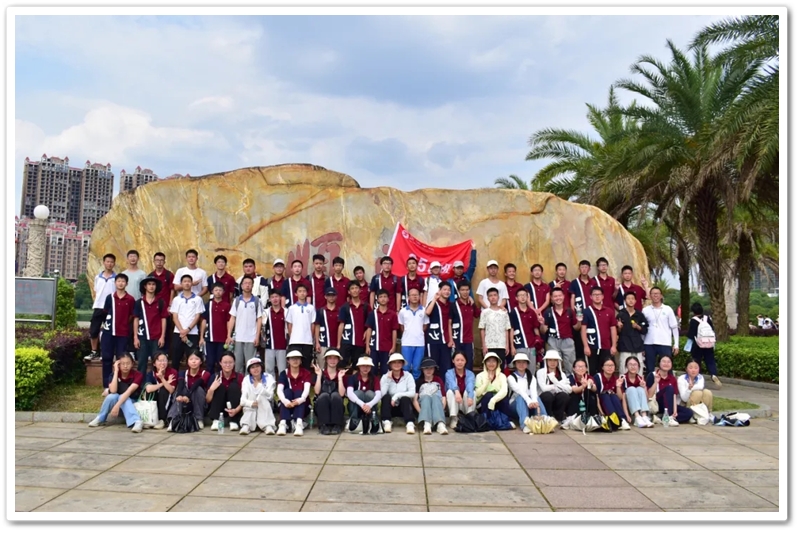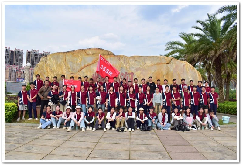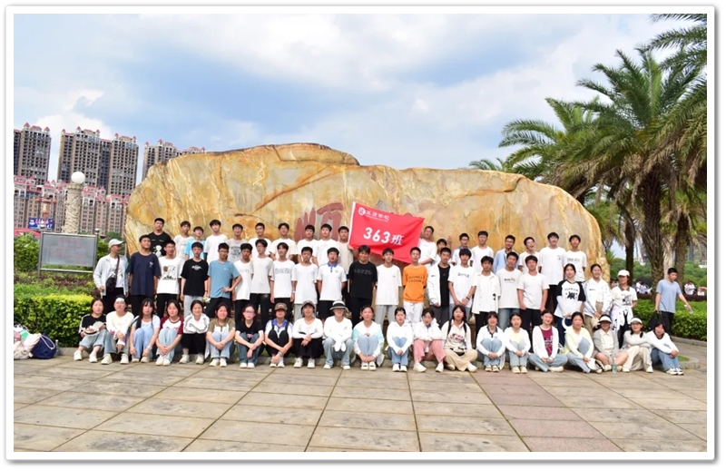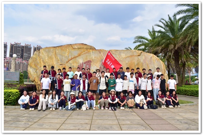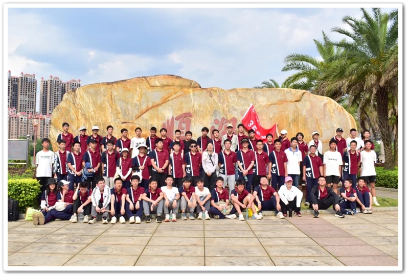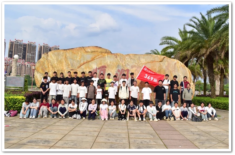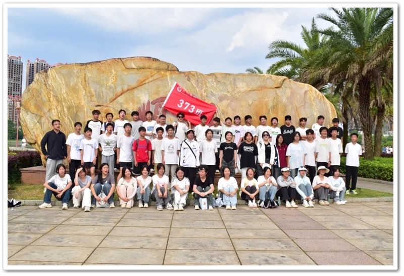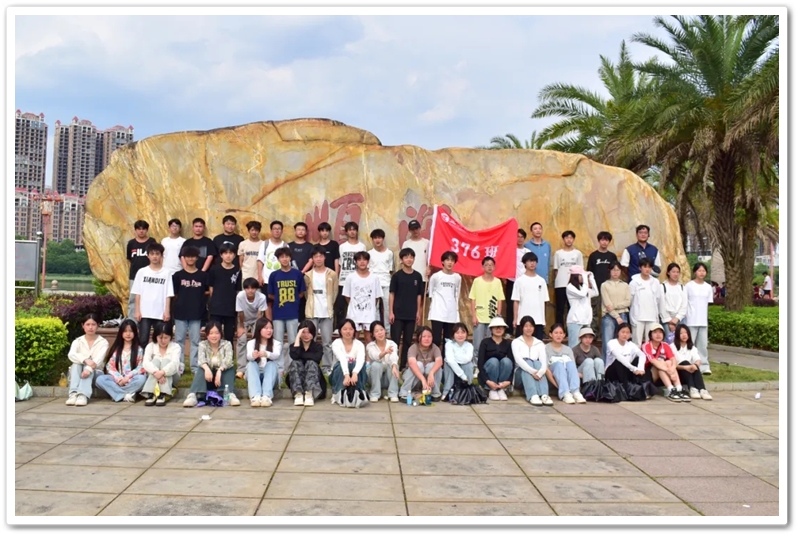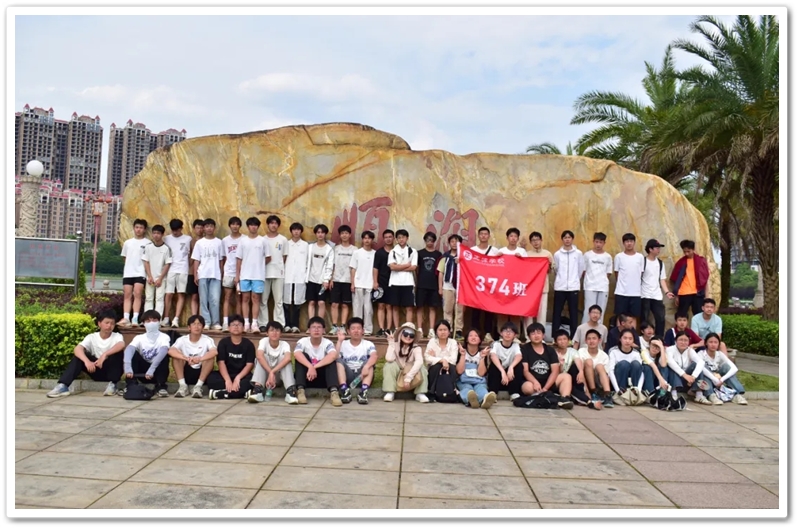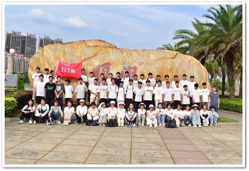 返程途经顺湖公园,各班级在这里休整并展开自由活动。凉亭休整,湖边赏光,树下乘凉,走走停停,队伍最后来到了顺湖公园的石碑——班级合影的打卡地。同学们整顿队伍,欣欣然来到石碑前,高举班旗,齐呼口号,留影独家记忆。