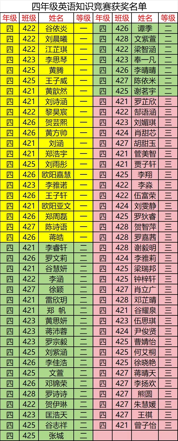 经过激烈角逐,三,四,五年级分别评选出了一、二、三等奖。年级就获奖学生进行了公开发奖,为全校同学树立了学习的榜样。获奖具体名单如下: