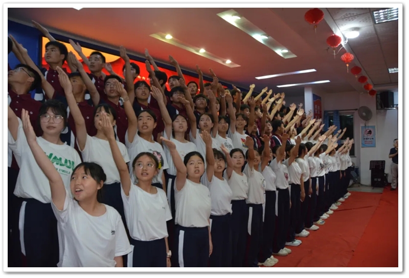 初三年级合唱团以磅礴的气势演唱了《走向复兴》,铿锵有力的歌声传递出坚定的信念,而《黑猫警长》的活泼演绎又让现场充满欢乐。