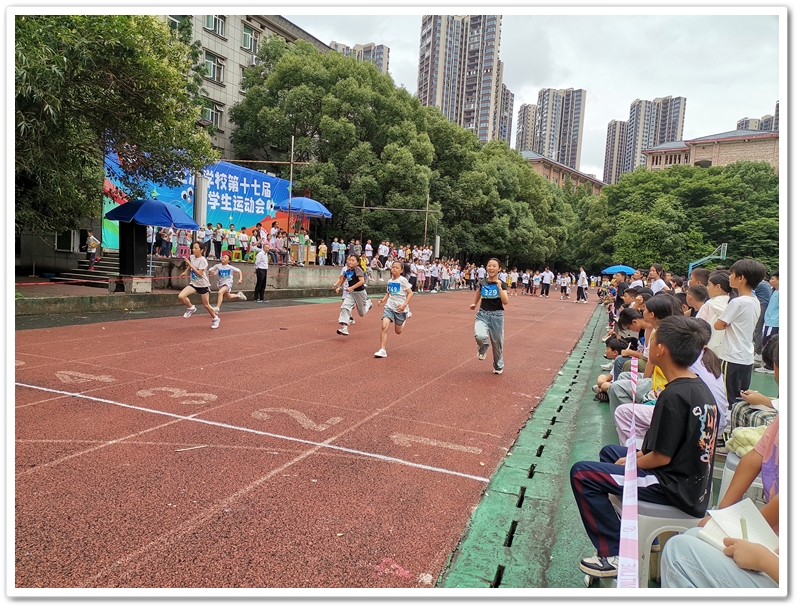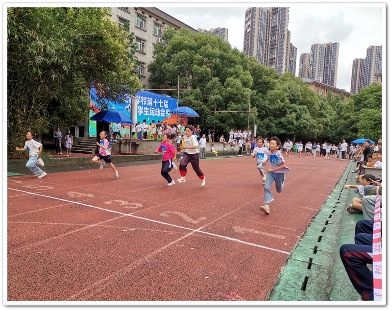 让我们一起来了解今天的运动会吧!上午举行完运动会开幕式后,下午两点四十,各年级赛事准时进行。比赛分为径赛和田赛。径赛项目主要是一到五年级男子组、女子组50米预赛,三到五年级男子组、女子组400米决赛。田赛项目按时间先后顺序安排如下:三年级男子实心球决赛、一年级男子立定跳远决赛、一年级男子跳绳决赛、三年级男子跳远决赛、三年级男子跳高决赛、三年级女子跳绳决赛、三年级男子立定三级跳远决赛、四年级男子跳远决赛、四年级女子跳高决赛、四年级女子实心球决赛、五年级女子跳绳决赛、四年级女子立定三级跳远决赛、一年级男子仰卧起坐决赛、二年级男子仰卧起坐决赛。