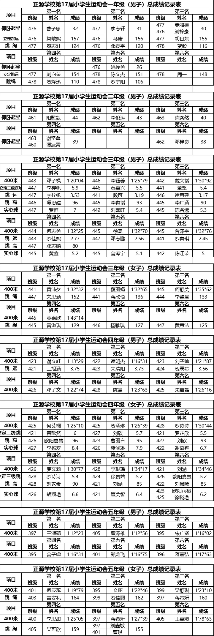 正源小学部第17届运动会赛场快讯(5月29日下午)