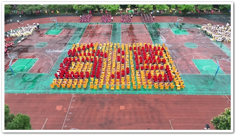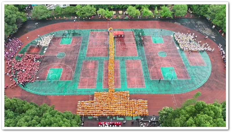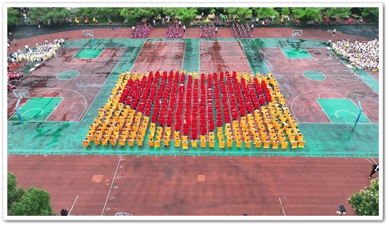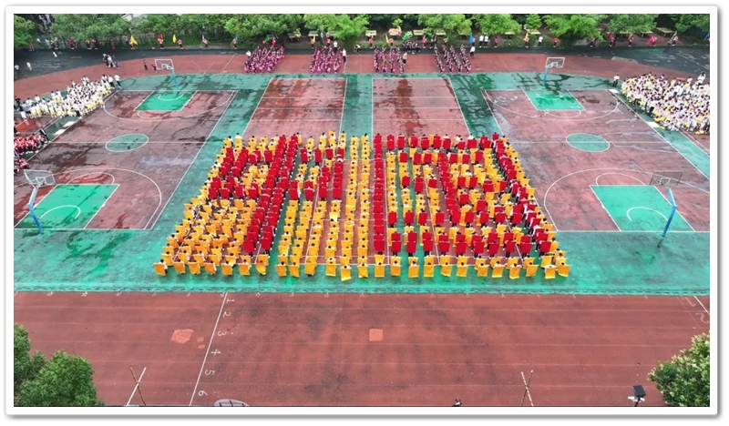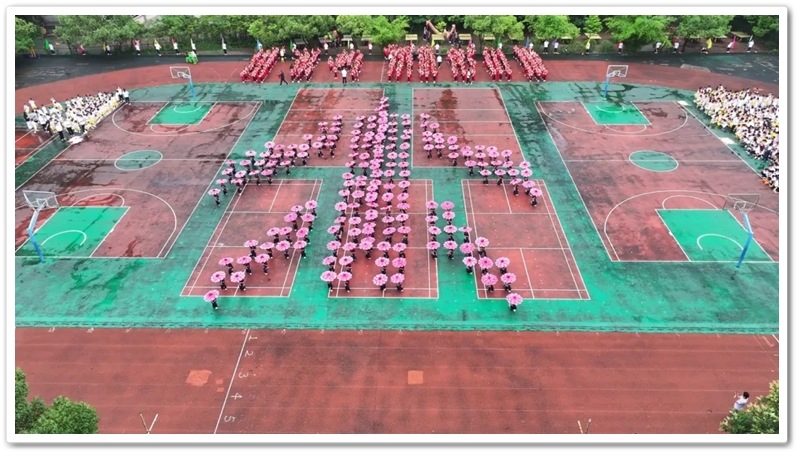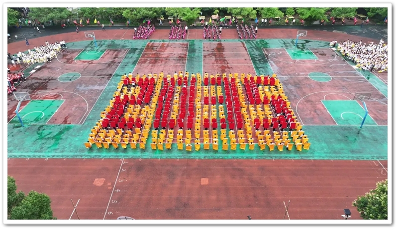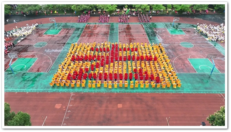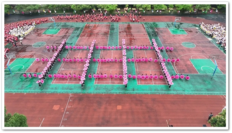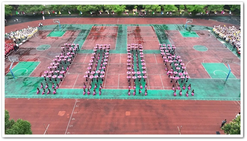 随后,欢快的旋律响起,同学们踏着节拍跳起《2035去台湾》,舞步轻盈、笑容灿烂,尽显青春活力。舞蹈结束,人群如潮水般流动重组,“2005”“2025”先后浮现,铭刻正源二十年辉煌足迹;“2035”闪耀登场,承载着祖国统一的殷切期盼。最后,大家默契变换队形,“更高、 更快、 更强”六个大字整齐排列,不仅诠释着体育精神,更传递出正源学子勇攀高峰的壮志豪情。这场团体操,是青春的跃动,更是对学校、对祖国最真挚的祝福。