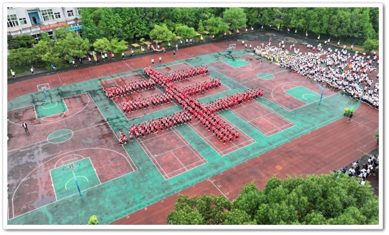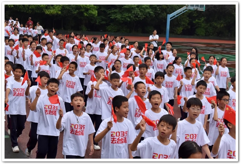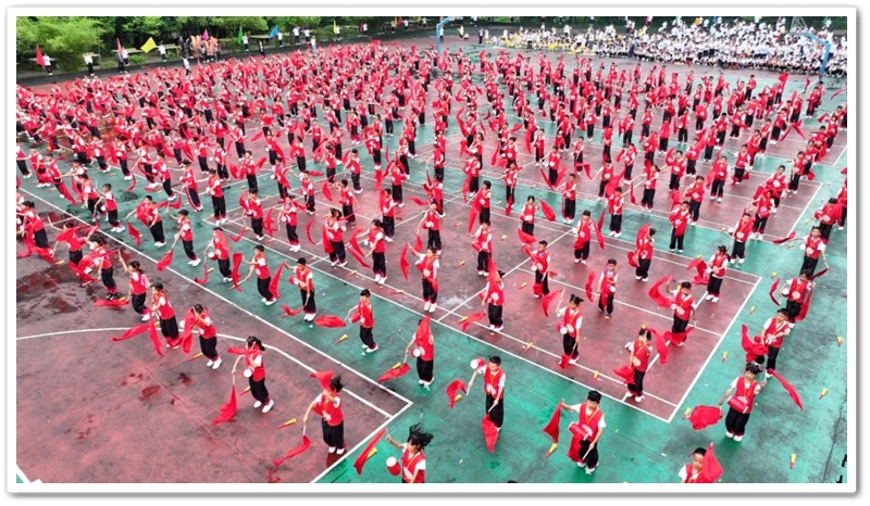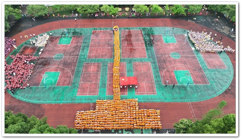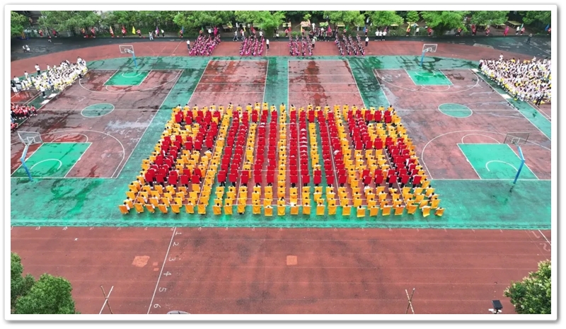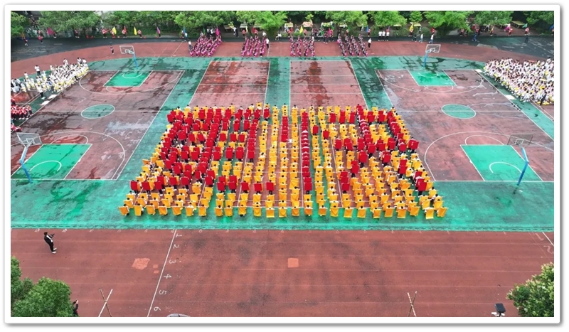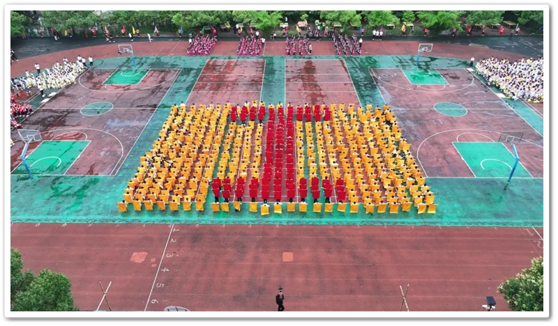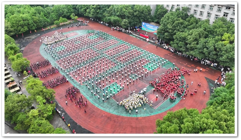随后,欢快的旋律响起,同学们踏着节拍跳起《2035去台湾》,舞步轻盈、笑容灿烂,尽显青春活力。舞蹈结束,人群如潮水般流动重组,“2005”“2025”先后浮现,铭刻正源二十年辉煌足迹;“2035”闪耀登场,承载着祖国统一的殷切期盼。最后,大家默契变换队形,“更高、 更快、 更强”六个大字整齐排列,不仅诠释着体育精神,更传递出正源学子勇攀高峰的壮志豪情。这场团体操,是青春的跃动,更是对学校、对祖国最真挚的祝福。