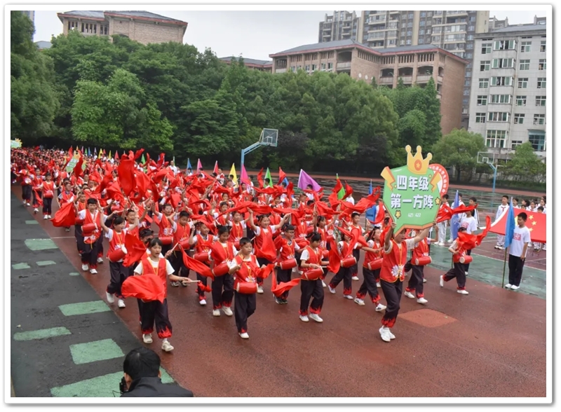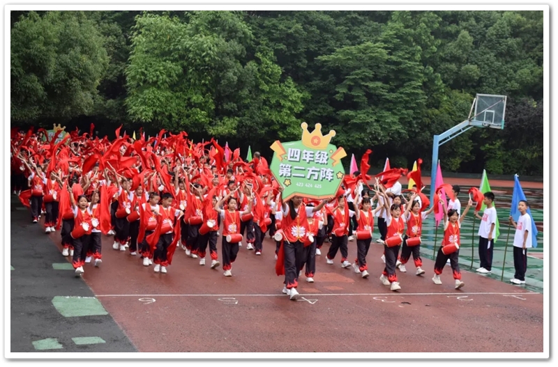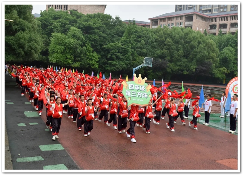 四年级第一方阵的421、422班,步伐铿锵,斗志冲天,呐喊如雷,“团结进取”的班风、“永不言败”的信念,让他们以汗水诠释拼搏,用笑容点亮赛场。第二方阵的423、424、425班,秉持“勇往直前,永不言败”的本色,循着“稳中求进”的历程,向着“超越自我,勇争第一”的目标前行。第三方阵的426、427、428班,似展翅雄鹰,怀揣梦想,准备翱翔九天,期待他们的精彩绽放。