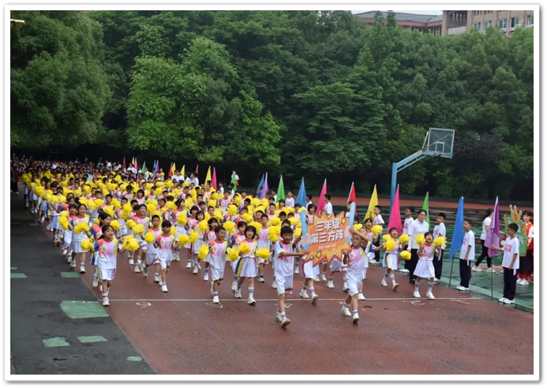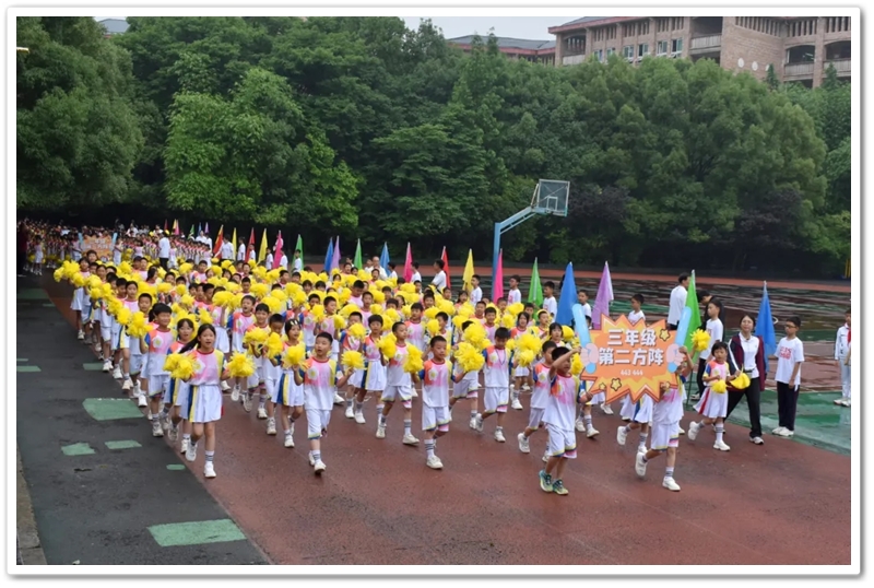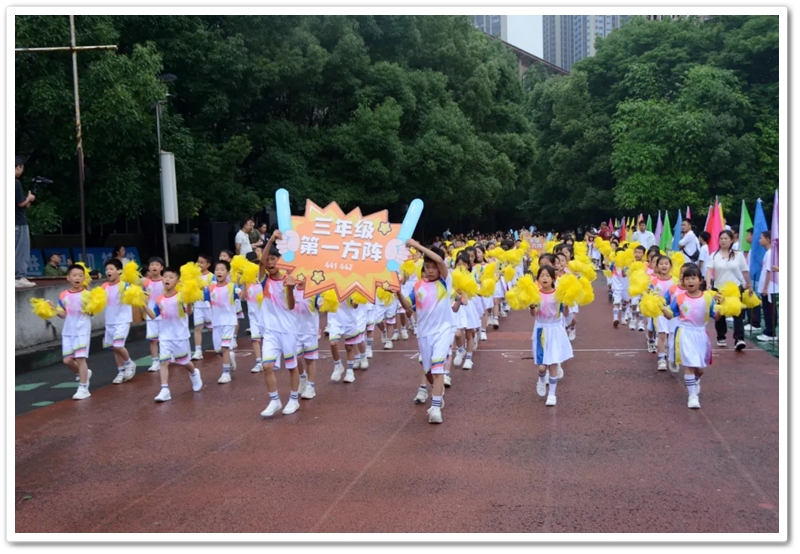 二年级460、461班的“小太阳”,步伐整齐,似春日树苗蓬勃,如闪烁星辰自信。赛场上,他们轻盈跳绳、风驰电掣奔跑、默契接力,用团结勇气书写精彩。462、463班的“小勇士”,喊着整齐的口号,昂首挺胸,如雏鹰展翅,热爱运动,全力以赴,坚信努力与坚持就是最美的勋章。