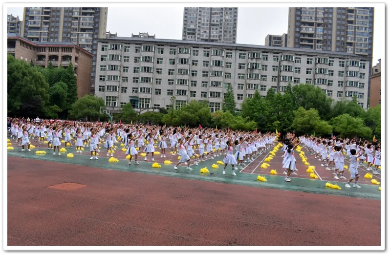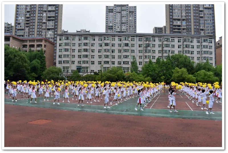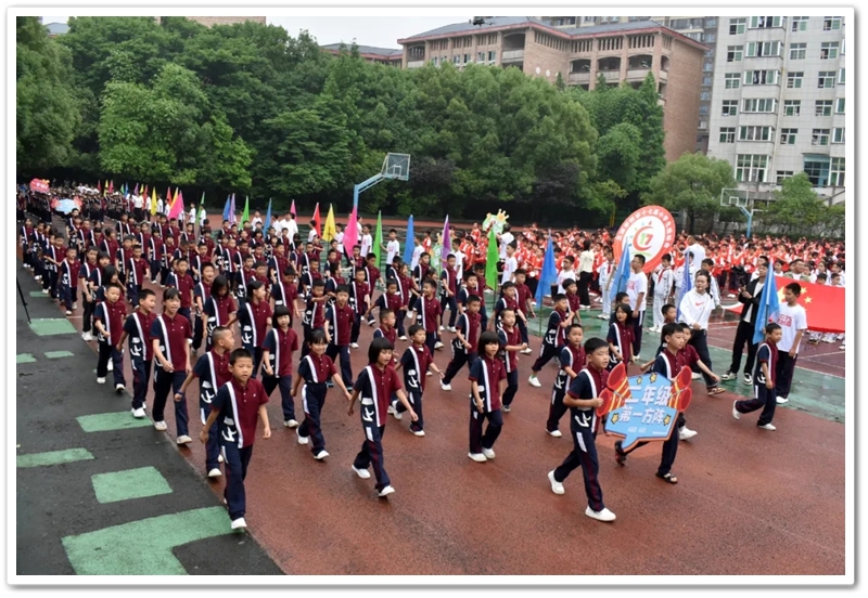 二十春秋育栋梁,今朝稚子展荣光。夏日暖阳倾洒运动场,