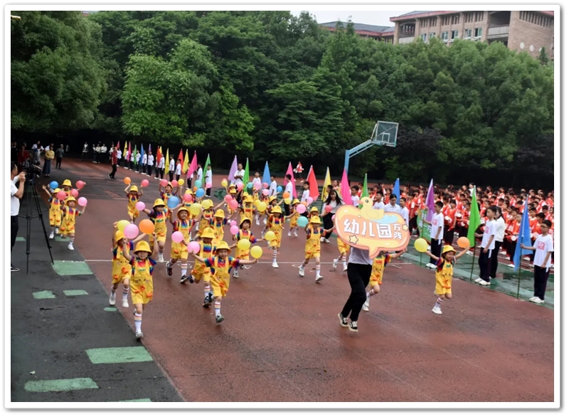 走在最后的是幼儿园的小可爱们,他们迎着朝阳,踏着节拍,如活泼的小太阳、跃动的小花朵,纯真笑脸绽放,蓬勃生机尽显,为赛场增添一抹灵动色彩。