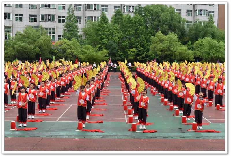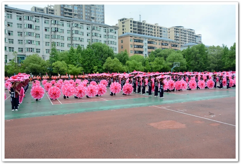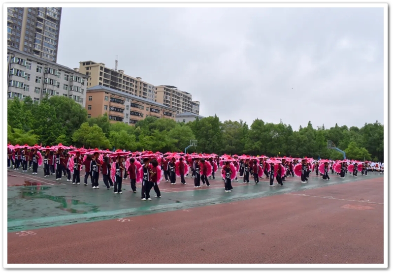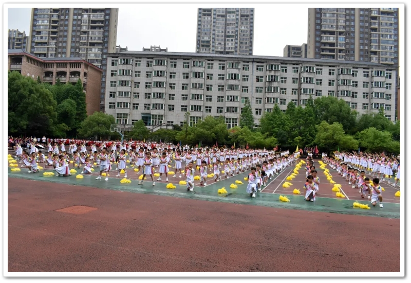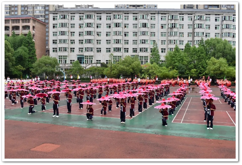 音乐响起,小伞在孩子们手中化作灵动的魔法道具。他们踮起脚尖轻轻一转,小伞便飞速旋出层层粉浪,裙角飞扬间,仿佛千万朵樱花簌簌飘落;眨眼间,小伞齐刷刷举过头顶,瞬间搭成一片灿烂云霞,萌娃们探出圆乎乎的脑袋,亮晶晶的眼睛透着认真劲儿;当小伞缓缓移到身体侧边,孩子们歪头一笑,酒窝里盛满蜜糖,随着节奏左摇右晃,像是风中轻轻摇曳的小花苞。整齐划一的动作里藏着童真的烂漫,这场如梦似幻的《盛世花开》,让整个操场都飘满了甜甜的花香!