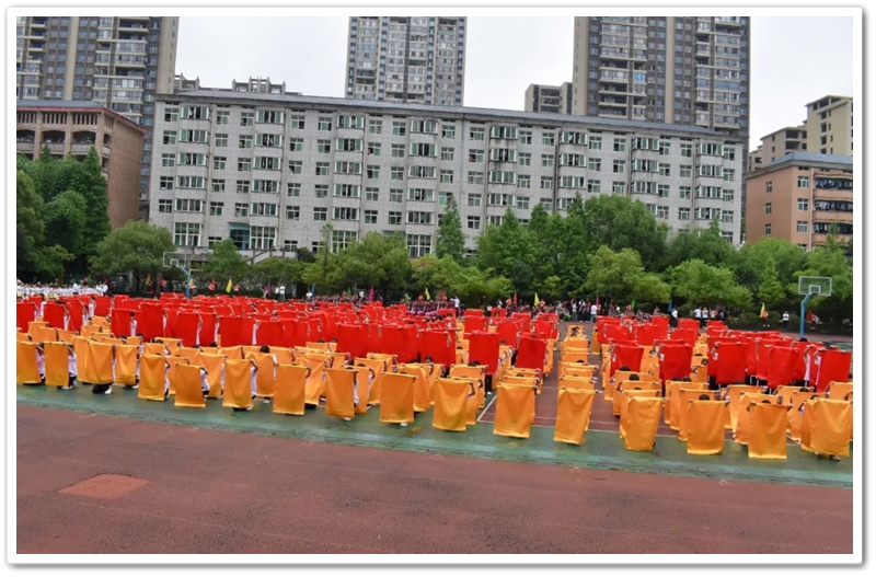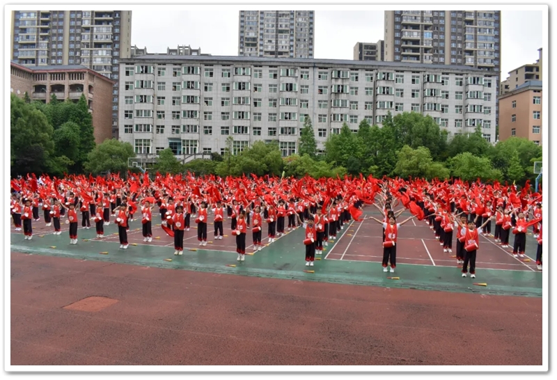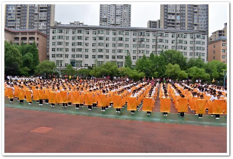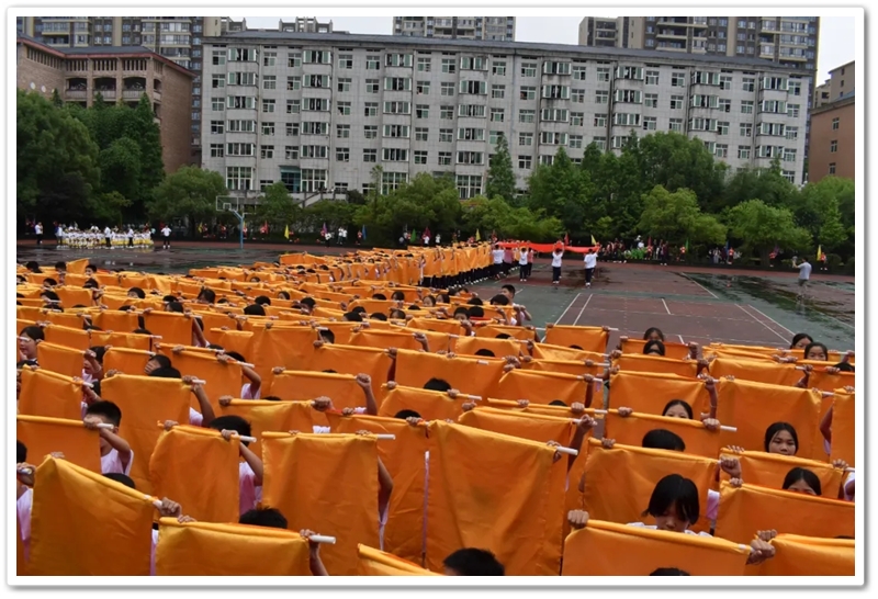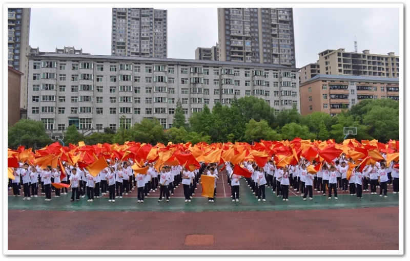 薪火相传续华章,旌旗舞动焕新光。四十名五年级学子擎旗踏歌而来。五彩旗帜如缤纷云霞翻涌,赤橙交织似朝阳跃动,蓝绿流转若碧波奔涌。少年们步伐整齐划一,手臂有力舒展,让彩旗在晨风里肆意舒展,掀起一片绚烂的浪潮。旗面翻飞间,映照着他们飞扬的笑靥与蓬勃的朝气,恰似将整个夏天的热烈与活力,都化作跃动的色彩,为绿茵场注入无限生机。
