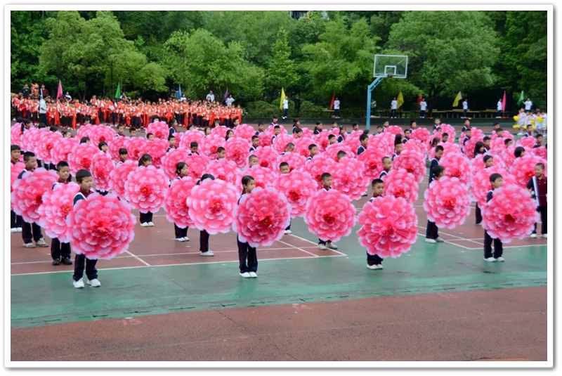 “更高 更快 更强”的呐喊声还在耳畔回响,一抹温柔的粉色浪潮已漫上舞台!二年级210多名萌娃手举粉色花瓣小伞,像一群误入人间的花精灵,蹦蹦跳跳地聚成绚丽花海。