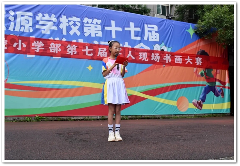 上午8点45分,本次现场书画大赛中,学部罗主任殷切致辞,鼓励参赛选手:大胆挥毫、肆意泼墨,用画笔勾勒想象,以色彩绽放创意,绘出独一无二的精彩!简短的话语,道尽了活动的深意。大赛在一片掌声中拉开序幕……
