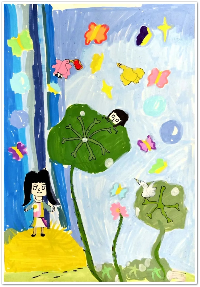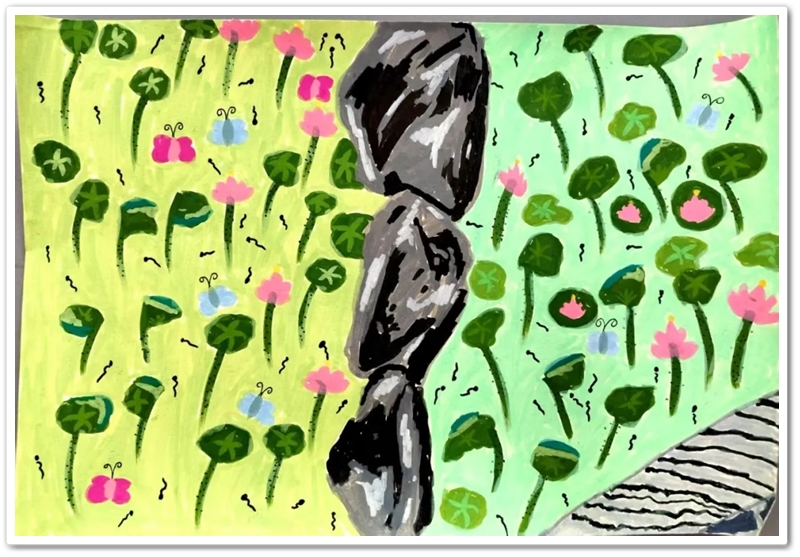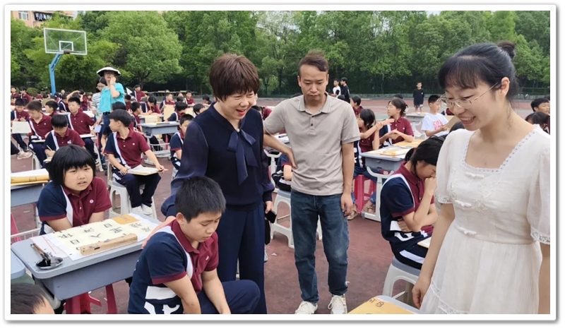 六月的校园:青山如屏,碧水含情,满池莲叶托起珍珠串;绿草如茵,繁花似锦,操场孩童荡开银铃音。这般山水画卷,这般生机盎然,正是灵感的源泉。一个个参赛选手在暖阳下以笔抒怀、以画言志,共同描绘美好画卷,书写童趣墨章。
