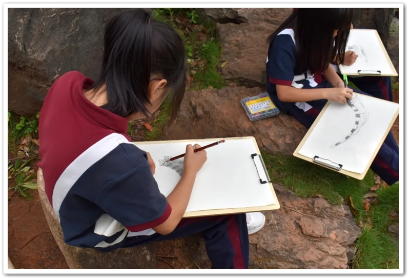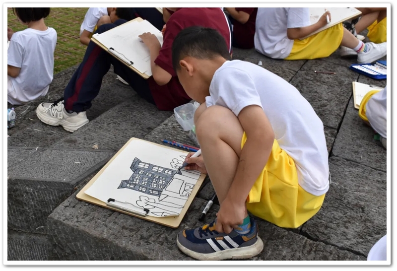 500名热爱绘画的小艺术家们,在运动场及校园各美景处,用画笔描绘校园之美,尽展艺术才华。