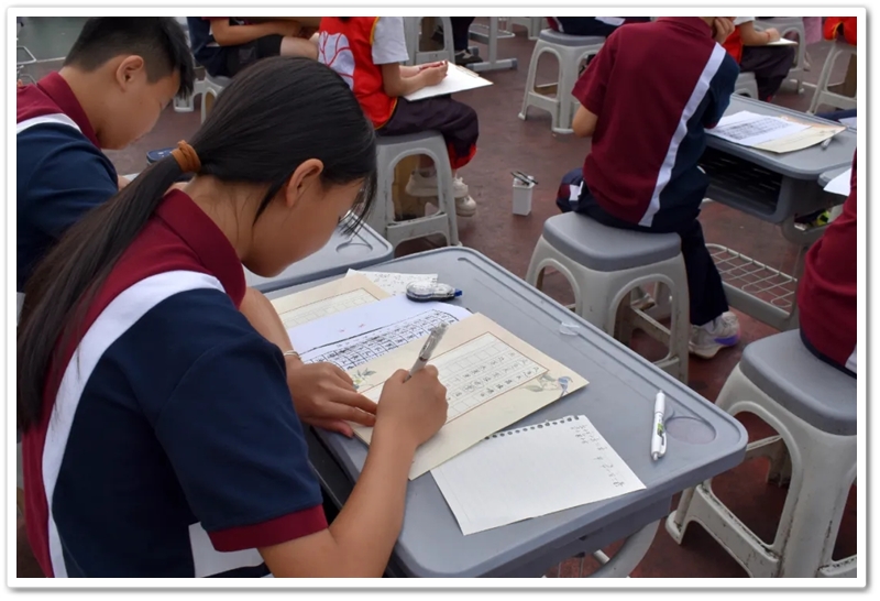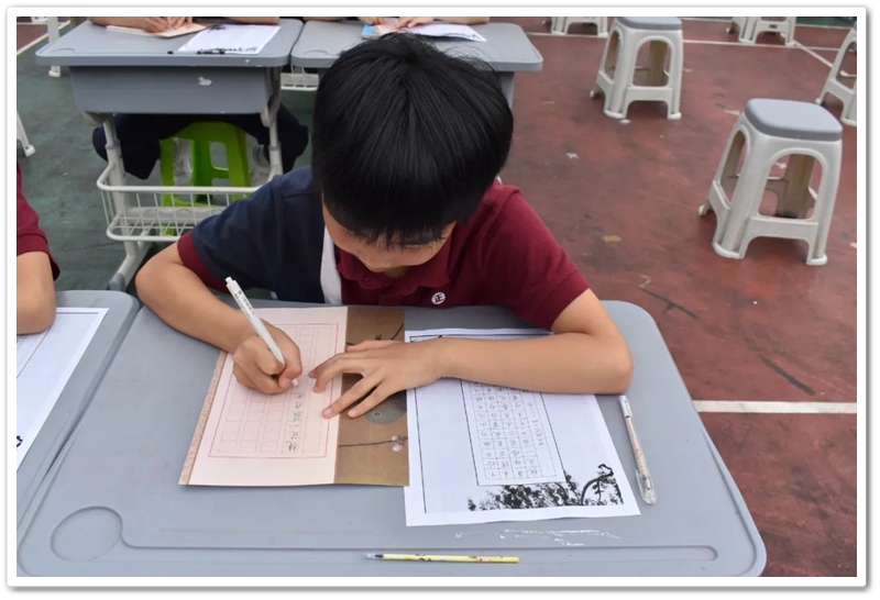 硬笔书法,虽无软笔的浓墨重彩,却以简洁流畅的线条,勾勒出汉字的端庄与秀美。一到五年级选手纷纷执笔,在洁白的纸张上用楷书书写着经典古诗,表达对传统文化的敬意与热爱。