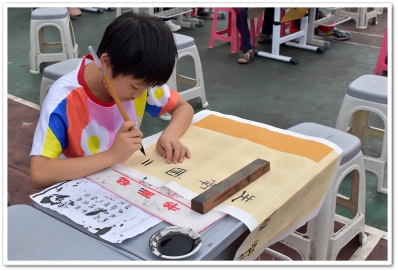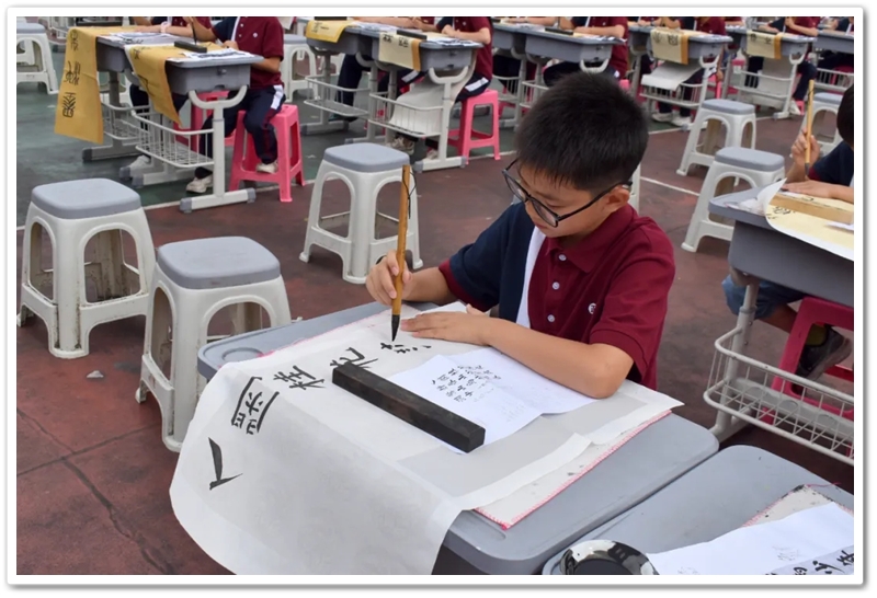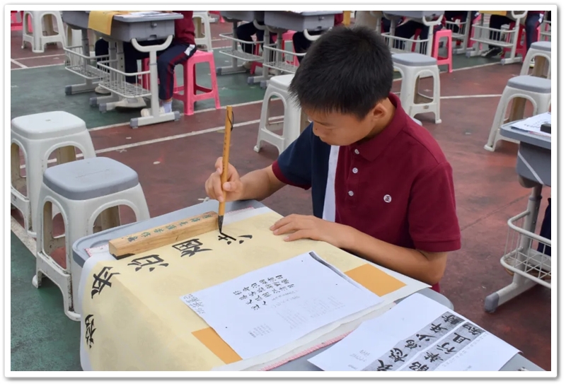 你看!比赛现场,墨香四溢,同学们屏息凝神,挥毫泼墨。