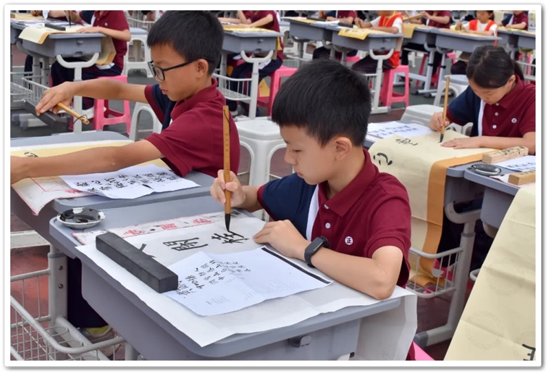 为丰富校园文化生活,营造深厚的校园文化气氛,激发学生的美术及书法的兴趣爱好,提高学生的艺术修养和审美情趣,正源学校小学部6月3日举办了第七届千人现场书画大赛。