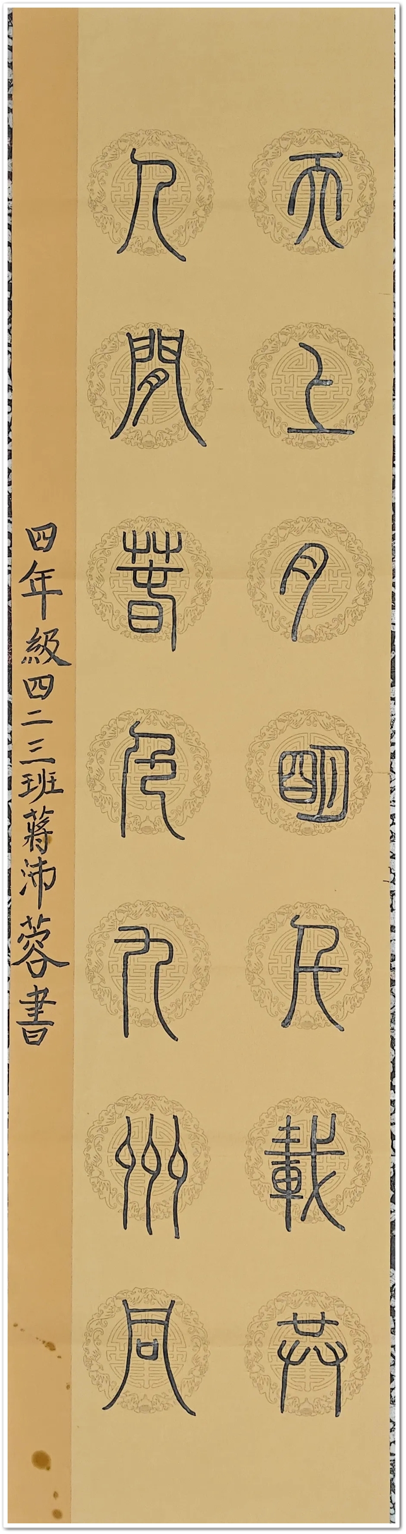 四年级选手则挑战用篆书写古诗或对联。篆书古朴典雅,线条圆润流畅,对书写者的控笔能力要求极高。但同学们毫不畏惧,认真临摹,一笔一画,将篆书的独特魅力展现出来。有的同学还书写了对联,对仗工整的文字与优美的书法相得益彰,充满了浓浓的文化气息。