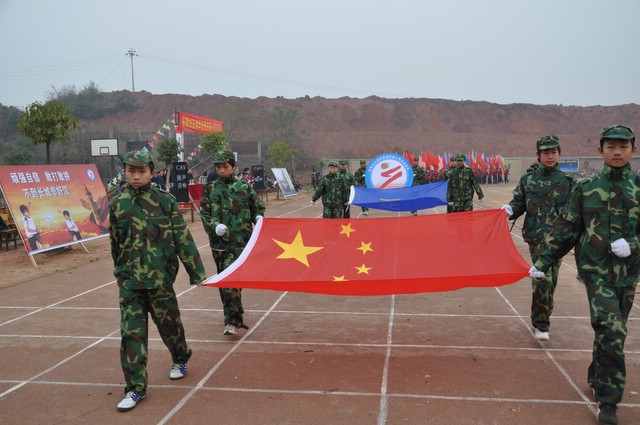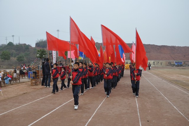 开幕式上,按班级或兴趣小组分别组成的36个方阵队伍,踏着运动员进行曲的节奏,挥舞手中的特色道具,呼喊着运动口号,迈着整齐的步伐沿着塑胶跑道依次走过主席台。