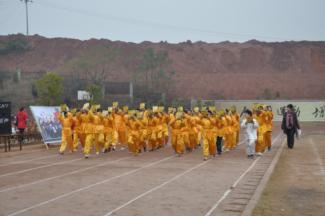入场完毕,数百名学生统一着装,进行团体武术和跆拳道表演,整齐划一的队形变化和动作表演,把开幕式推向了高潮,赢得了现场雷鸣般的掌声。