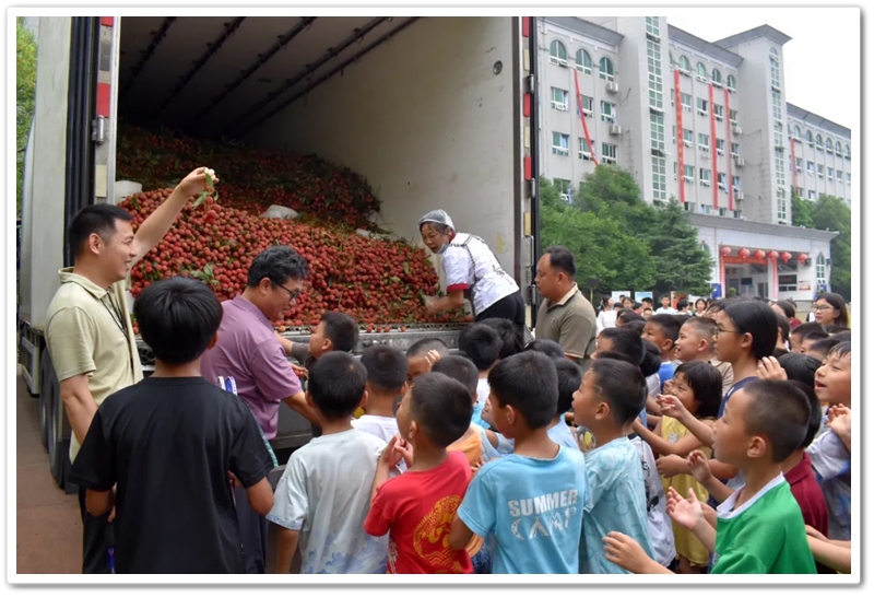 为何舍近求远?首要在于顺应时令,当季蔬果最养人;更重要的是,从源头杜绝“科技狠活”,确保孩子们吃得天然、健康、放心。至于这新鲜美味量又足,倒成了顺理成章的附带收获。不仅水果,学校的蔬菜、米面、肉禽蛋等食材,均秉持同样标准。而且现如今,孩子们教室里喝的桶装水,食堂煮饭、煮粥、煮汤、煮豆浆的水,也是每日从观音阁和郴州五盖山正源教师度假村用专车拉来的山泉水。孩子们可理会不了这么多,他们此刻关心的,是荔枝好不好吃、够不够吃。
