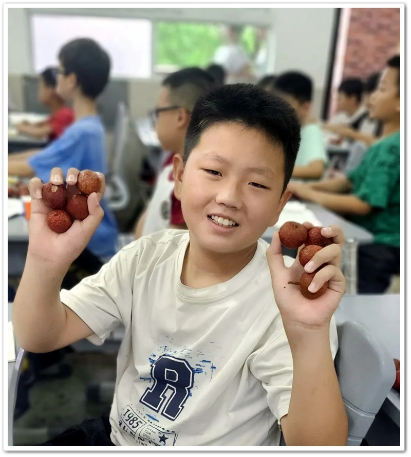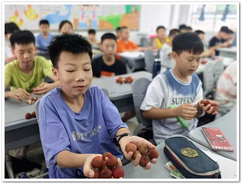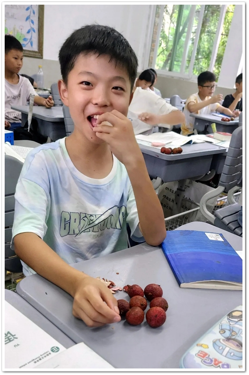 “一切为了孩子的健康成长”,这绝非空话。它融入食堂绿色天然的食材里,蕴藏于风清气正的学风之中,体现在杜绝手机游戏的严格管理上,实践于精耕细作的教学过程内,也凝聚在这一粒粒鲜活的荔枝之中,绽放在孩子们甜甜的笑容里。