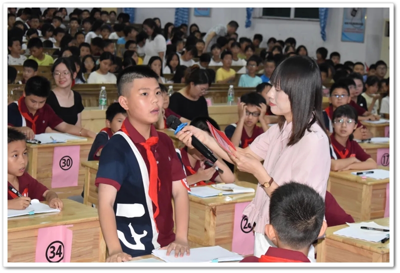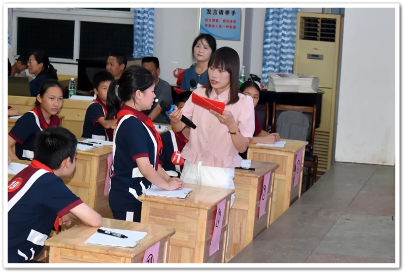 在五年级彭升银老师和梁姿两位老师对比赛规则介绍后,五年级数学擂台赛正式拉开序幕。