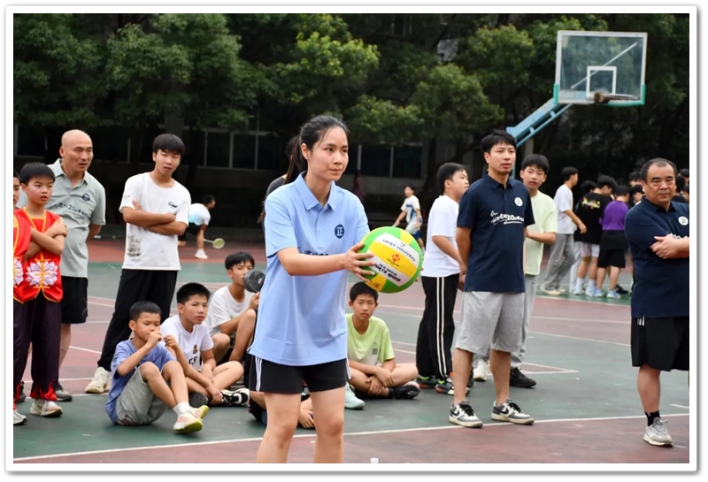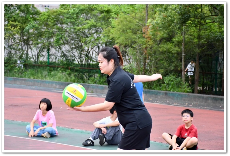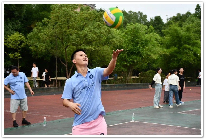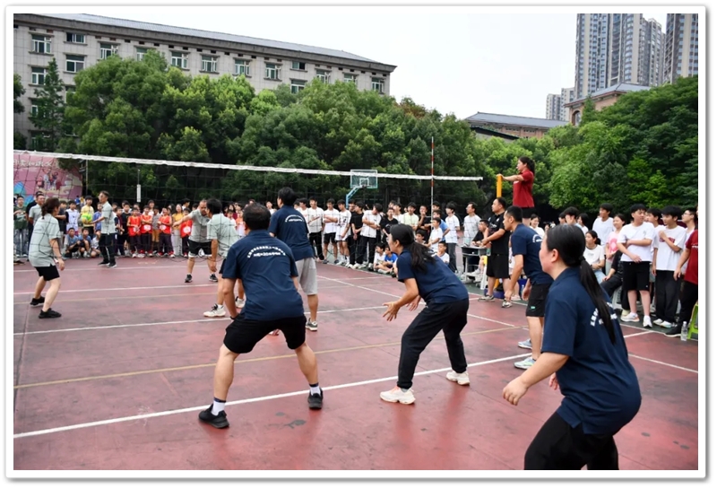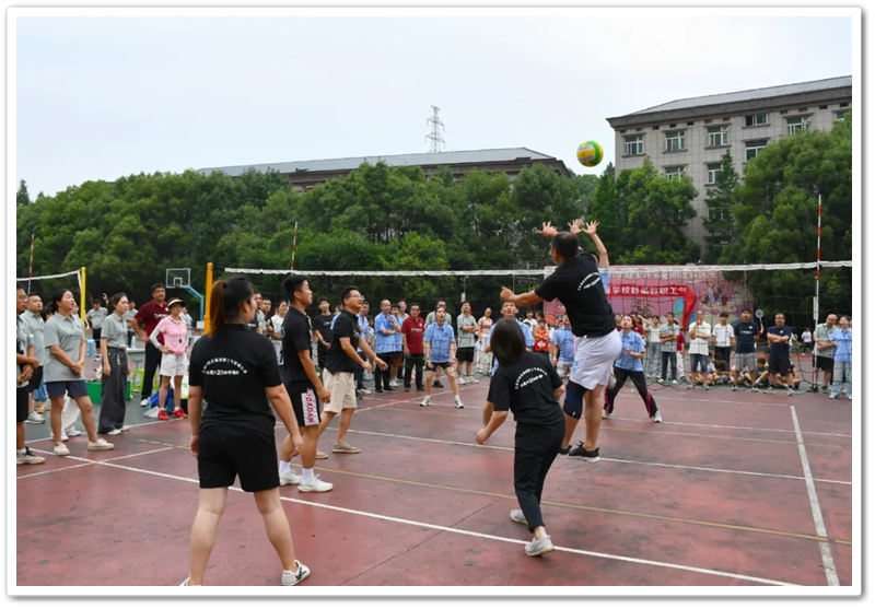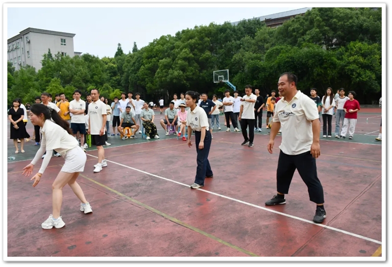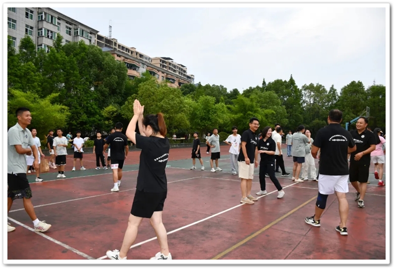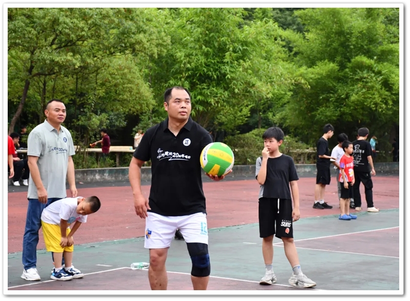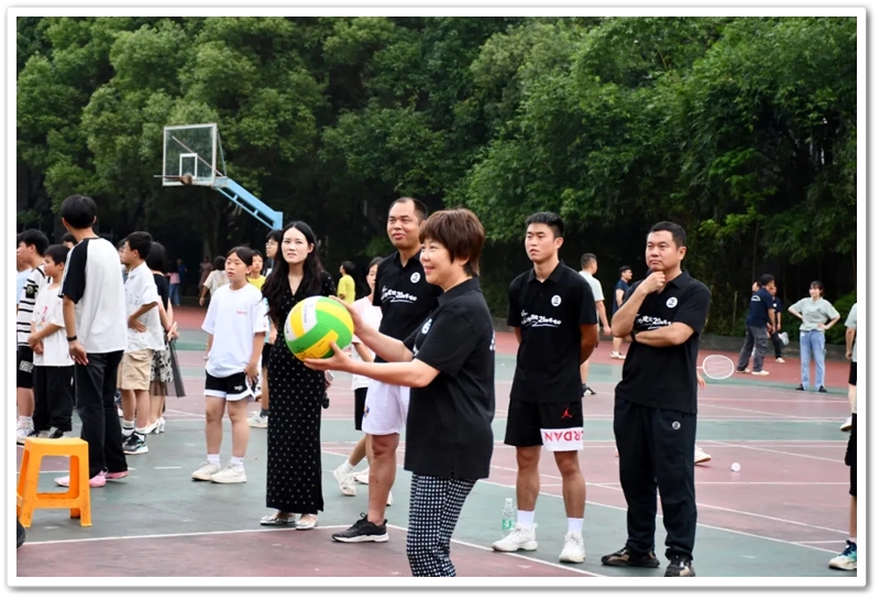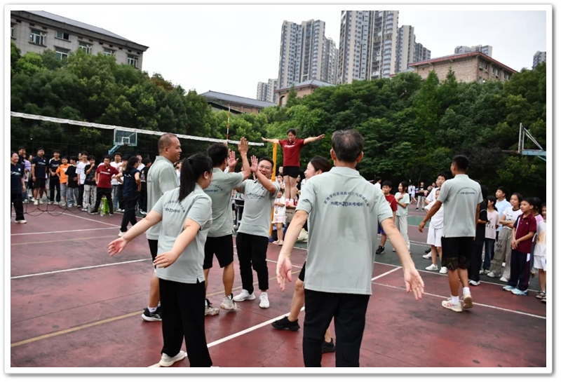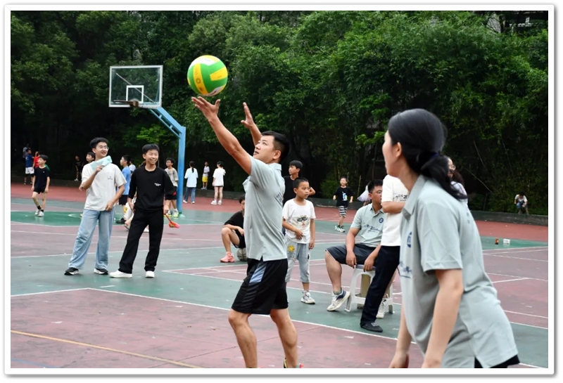 党支部书记毛小波宣布比赛开幕后,各年级处室代表队立即展开角逐。值得一提的是,年轻时曾任过排球队长的罗校长与夫人梁晓芬老师联袂出战晋级赛,将现场氛围推向高潮。
