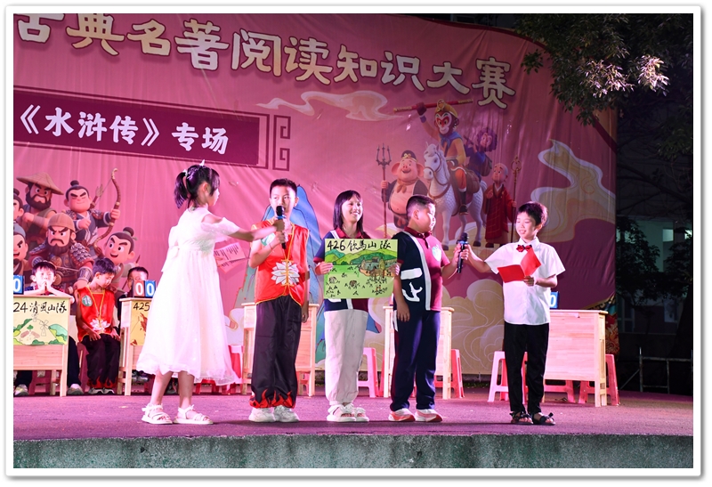 歌德曾言:“读一本好书,就等于和一位高尚的人对话。” 《水浒传》作为中国古典四大名著之一,一部书写英雄史诗与忠义传奇的经典白话章回小说,影响深远。为弘扬国学传统,让名著知识浸润校园,营造馥郁书香氛围,6月23日晚正源,小学部四年级语文组在小学部运动场成功举办了《水浒传》阅读知识竞赛。